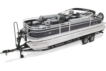 You just can't do much better than the 2025 SPORTFISH™ 24 XP3 if you're looking for the best floating fishing and relaxing station! This SUN TRACKER® pontoon boat's 24' deck stays stable thanks to 3 pontoon logs with lifting strakes. Be ready to wet a line at any moment with the lockable rod box. From the bow casting deck’s dual removable and folding fishing chairs, anglers can take advantage of rail-mounted rod holders, an aerated livewell, the tackle storage compartment, and more. Those who just want to sit back on the water can do so in the rear-facing couch, the L-shaped aft lounge, and the fore couch—all of which hide extra storage spaces under their seats and behind their seat backs. The pilot can relax and find the next cove in the swiveling captain's chair. Find your spot and pull up the 10' QuickLift® bimini top for some shade. When the bites slow down, turn on the 2-speaker Wet Sounds® stereo with Bluetooth® compatibility to create a soundtrack for your day on the water. The SPORTFISH™ 24 XP3 comes standard with a 150hp Mercury® L FourStroke outboard motor and has a recommended maximum 250hp rating. |