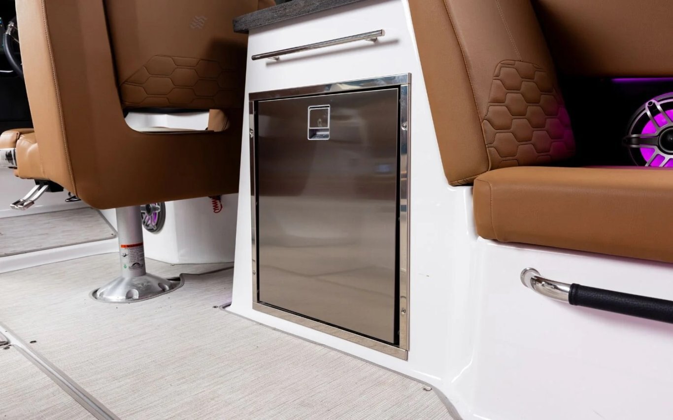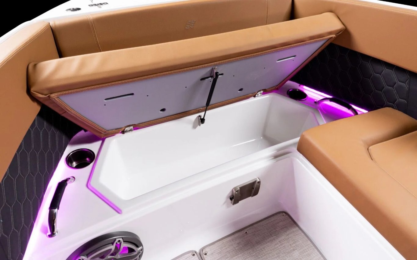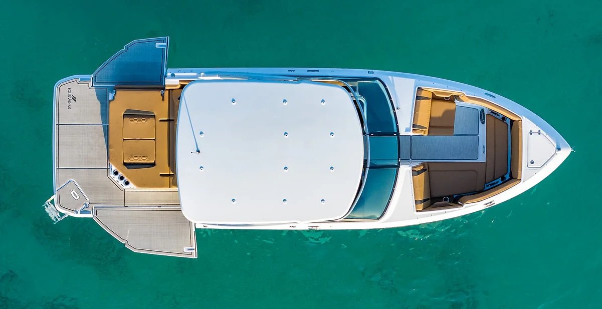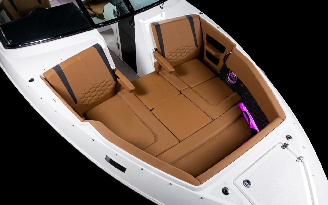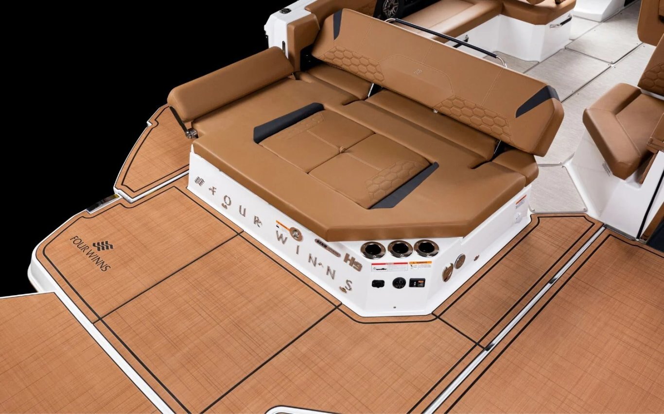 Iconic moments on the waterStep into the refined world of the H9 Sterndrive, a thoughtfully designed model featuring Elegant Side Terraces, a fold-down backrest for sunbathing and customizable options. Premium hand-sewn upholstery, sleek finishes, and a streamlined profile embody the Four Winns aesthetic. Enhanced cockpit controls ensure effortless navigation, while multiple storage compartments and a built-in galley offer smart functionality and comfort. The H9 Sterndrive redefines luxury, style and comfort on the water. |