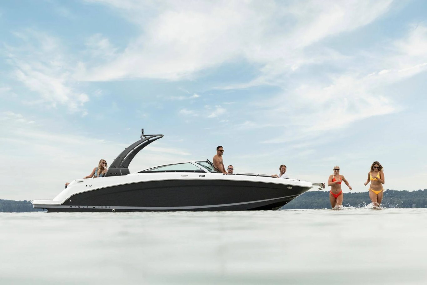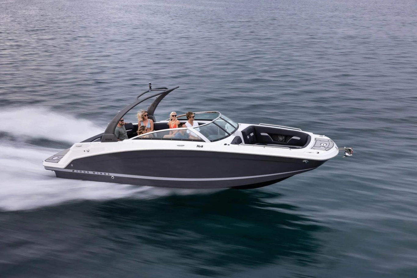 - Windshield w/walk-thru, full-height, curved glass, exclusive design