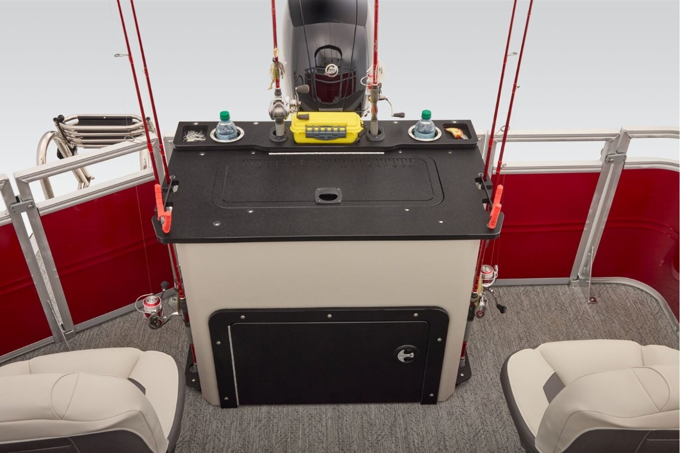 • NEW aft fishing station w/dual gates & aft platform; 2 pedestal seat base locations; & incorporated rod & tool holders