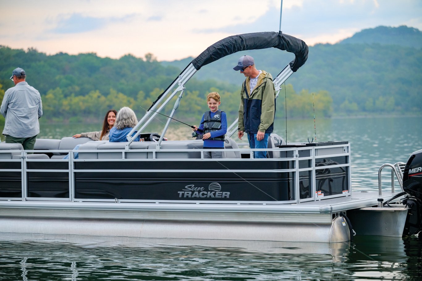 • 10' (3.05 m) Black SUN TRACKER® QuickLift™ Bimini top w/LED courtesy lights, storage pockets & protective boot