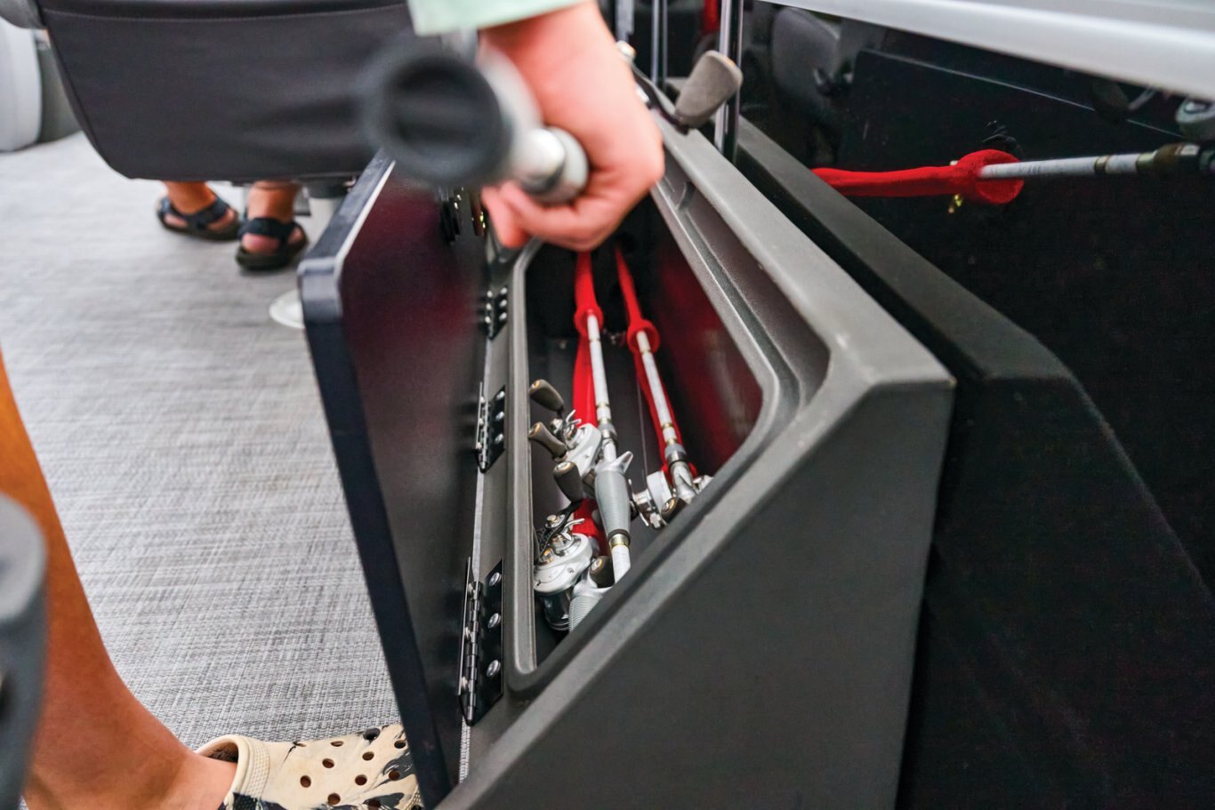 • Aft starboard lockable rod box for 6 rods to 7' 6" (2.29 m) w/lid, rod tube holders & organizer