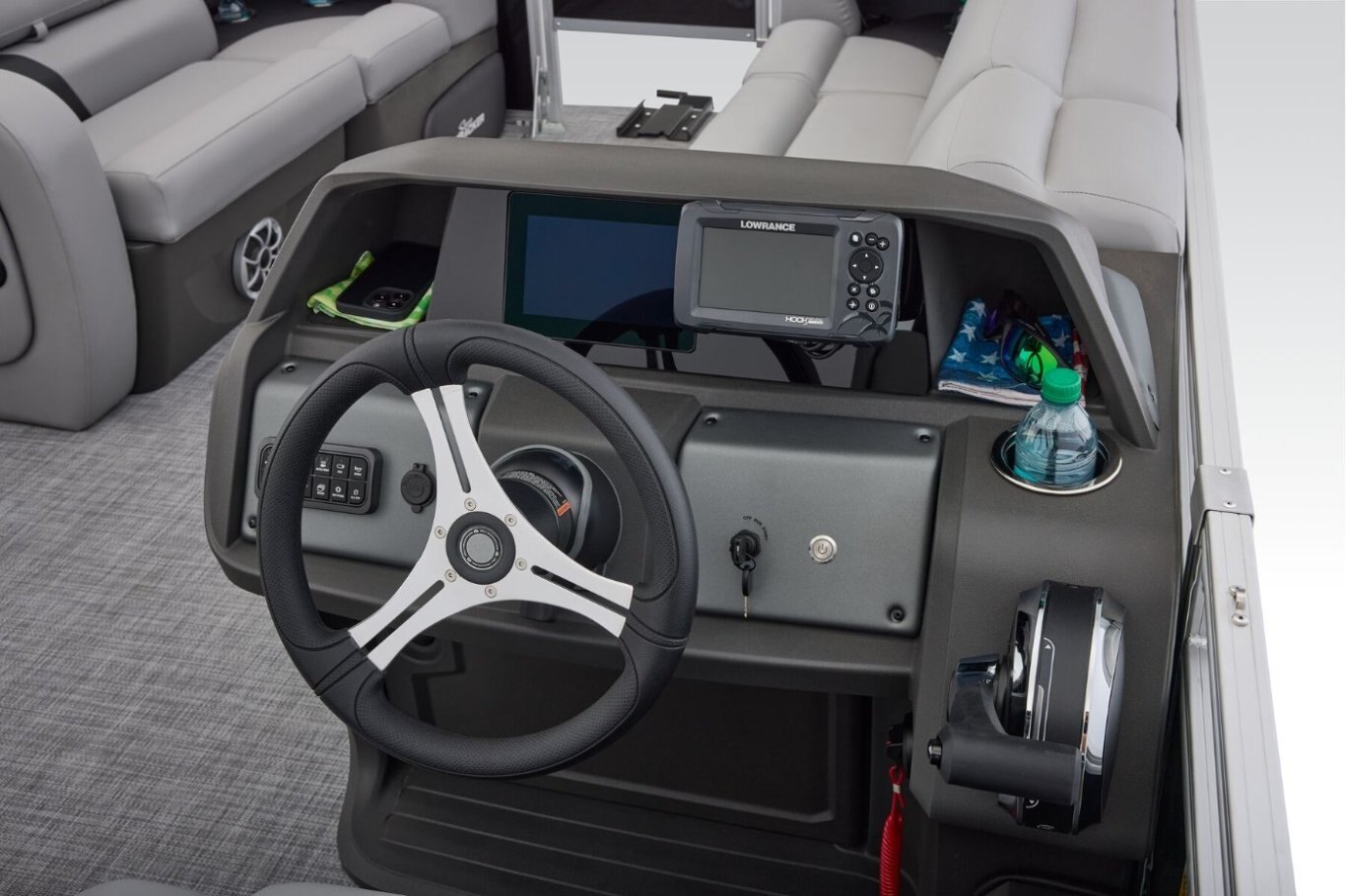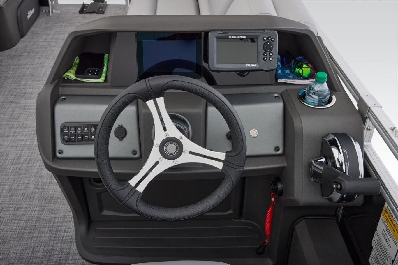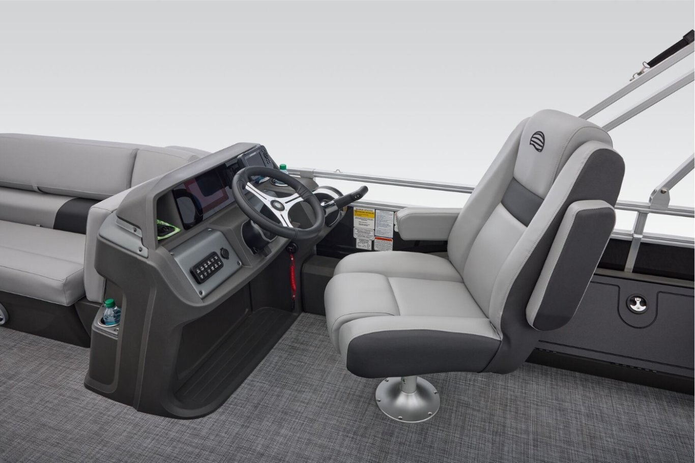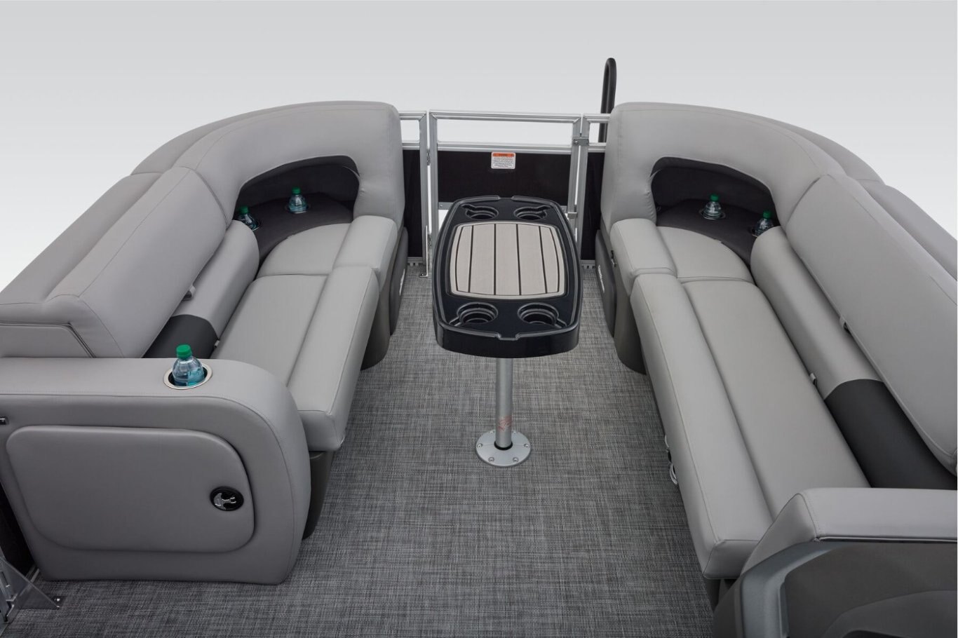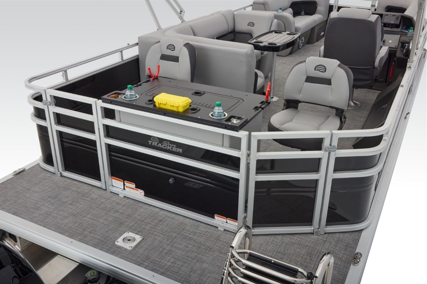 This is the fishing pontoon the whole family can enjoy. This SPORTFISH introduces a third lounge and pushes back the second casting chair to the aft casting deck. The 22 DLX also introduces a lockable rod box that can fit up to six rods. The 2026 model year brings some fine-tuned changes, including a wider boarding ladder, open storage spaces with cupholders built into the seatbacks, and more.