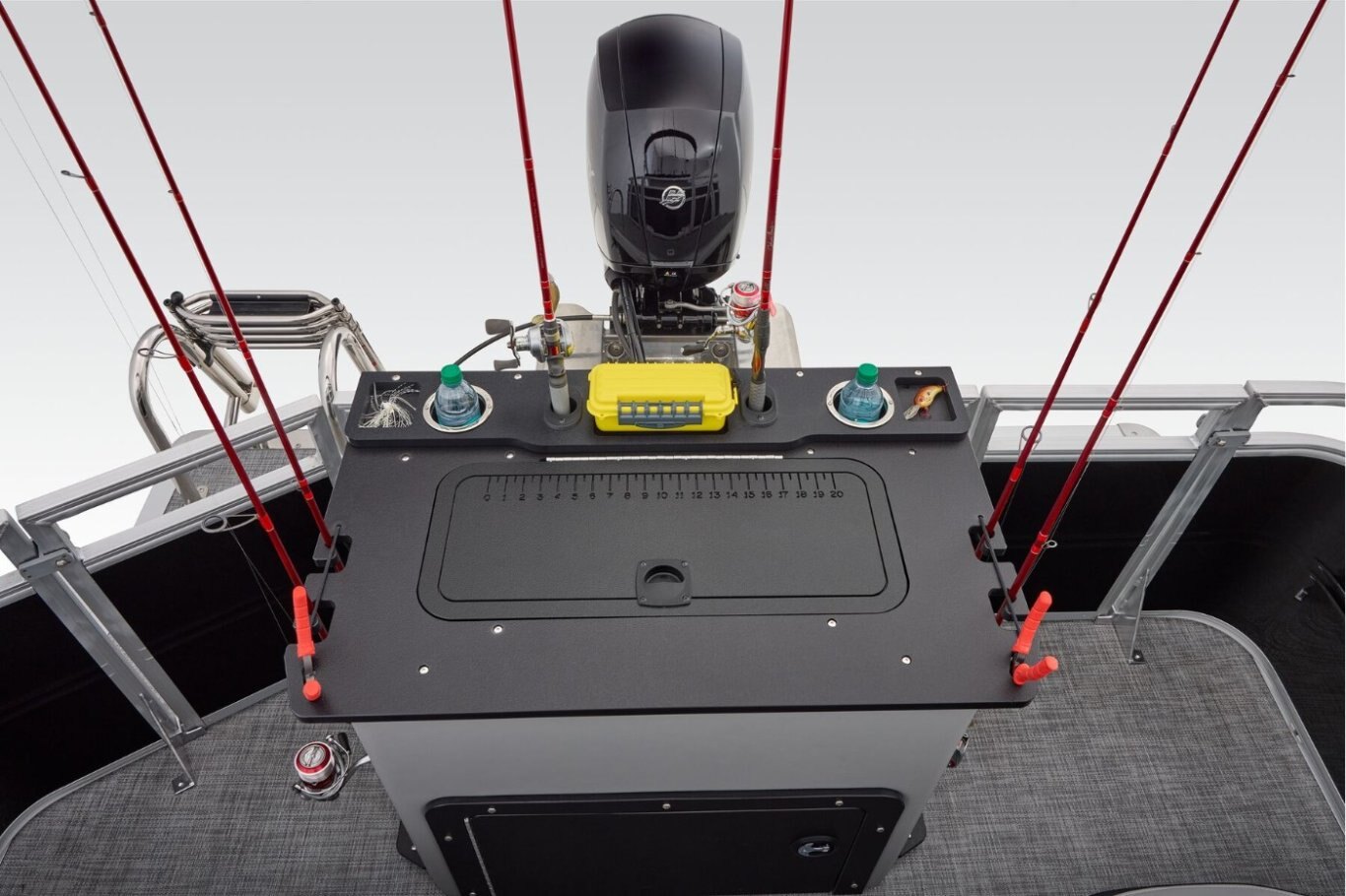 • NEW aft fishing station w/dual gates & aft platform; 2 pedestal seat base locations; & incorporated rod & tool holders