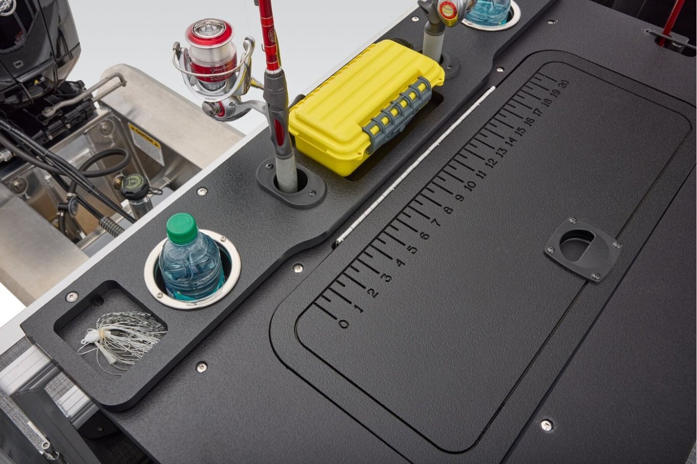 • Aft 15-gal. (56.78 L) aerated livewell/baitwell w/shutoff valve, drink holder, rod holder & composite lid w/fish ruler