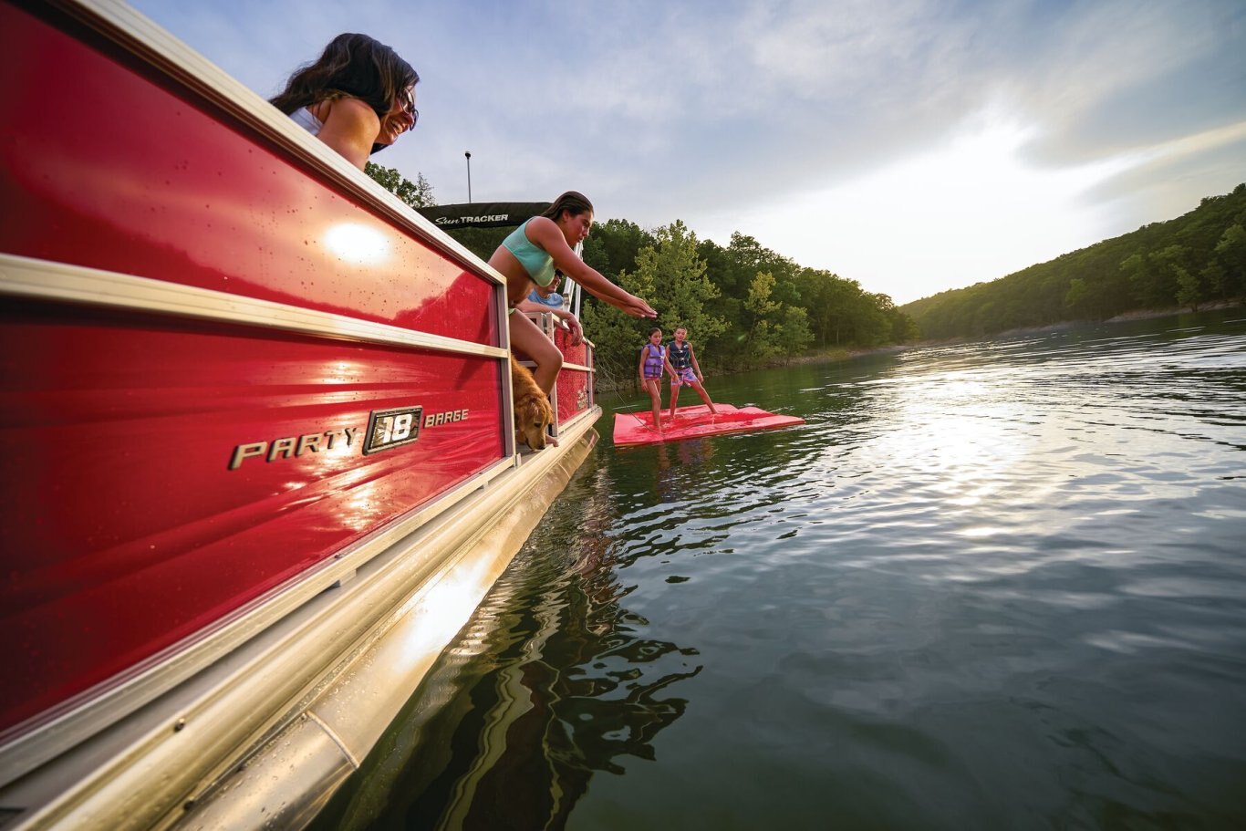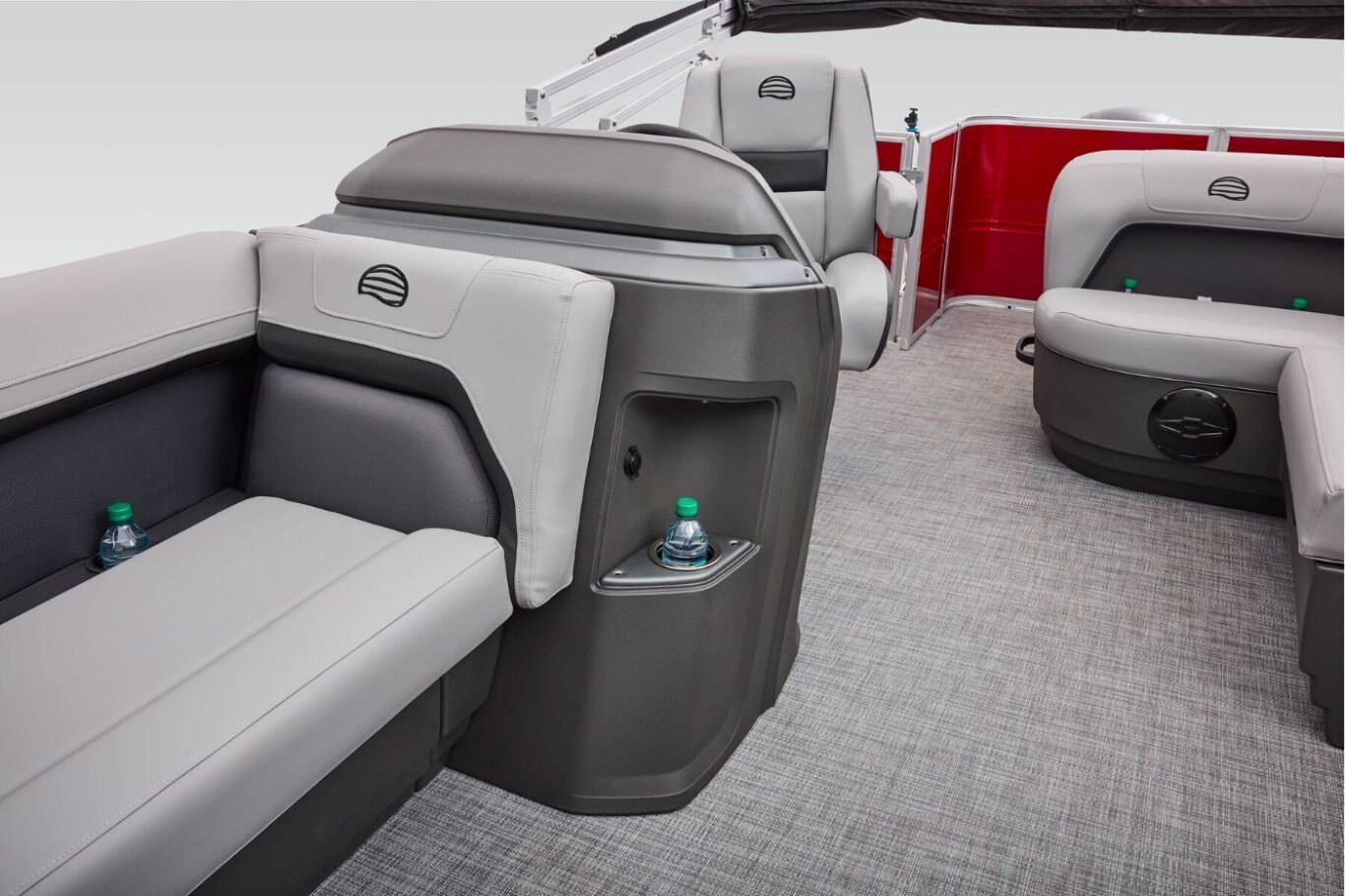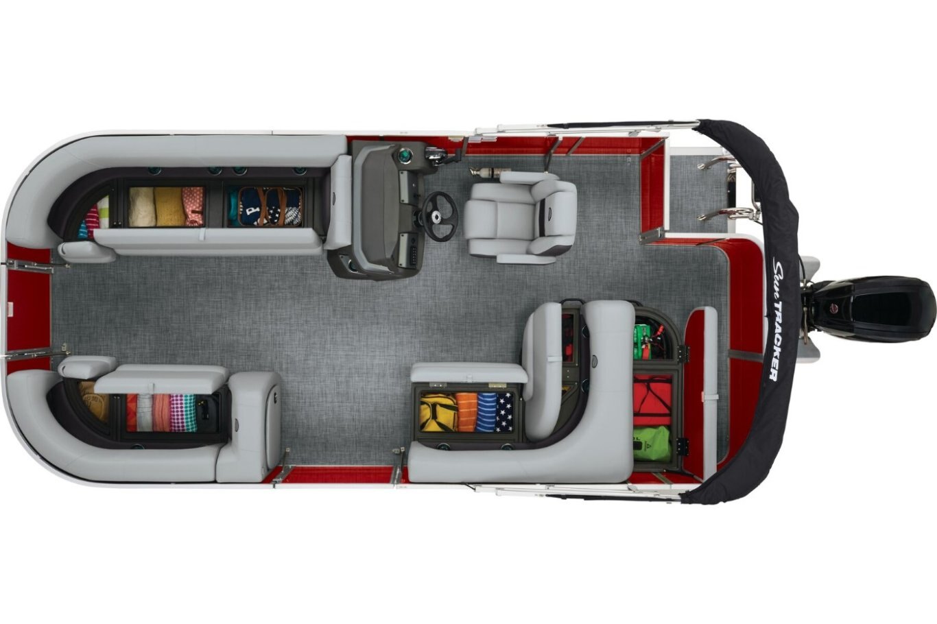 The 2026 model year brings some exciting changes to the 18 DLX. The lounge now features open storage compartments with extra cupholders built into the backrest. This ingenious use of space adds more than six cubic feet of extra storage space to the boat. The captain also gets a new console design with all the stops. The 17' 8" deck gives your crew three lounges and a rear-facing bench to relax in. Each lounge sports hidden compartments that secure all your supplies. The rear boarding platform features a new, wider telescoping boarding ladder with grab rails. Whether you’re taking the kids out for fun, or you and your buddies are headed to the party, the PARTY BARGE 18 DLX is always game! |