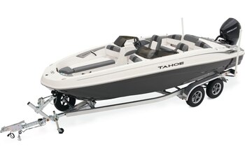 Living through days you hope will never end is a great problem to have. The new 2025 TAHOE® T21 is built for those days. Up to 11 passengers can feel the thrill thanks to the T21’s POWERGLIDE® hull with HYDROSTEP strakes that enhance stability and overall performance. Raise the standard removable ski-tow pylon to take on your exciting watersports. The console’s 8” touch screen with digital switches updates you with information such as your motor’s vitals, the water’s depth, and your current speed. Play DJ with the Bluetooth®-compatible Kicker® stereo. Take your places in the luxurious dual forward lounges, dual midship bucket seats, and the aft 3-across bench. You’ll find space for your gear and supplies under the seats and sun-pad cushions, consoles, and the in-floor storage compartment. When you’ve found a cove you want to explore, the anchor locker, dual aft swim platforms, and telescoping ladder make diving into the waters and getting back into the boat easy. The 2025 TAHOE® T21 comes standard with a 150hp Mercury® XL Pro XS® FourStroke outboard motor and has a recommended maximum 200hp rating. This model is packaged with a trailer. |