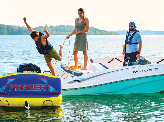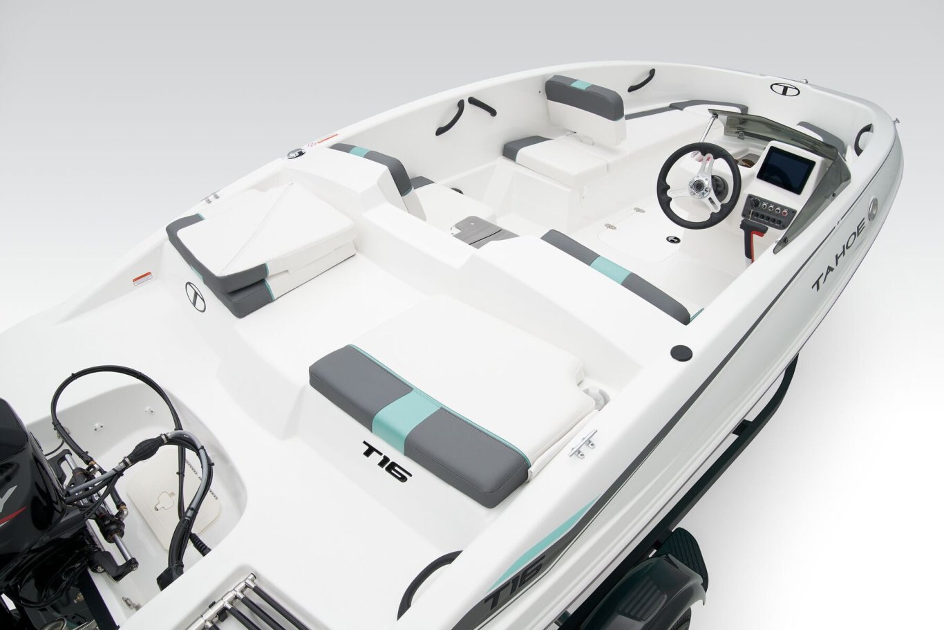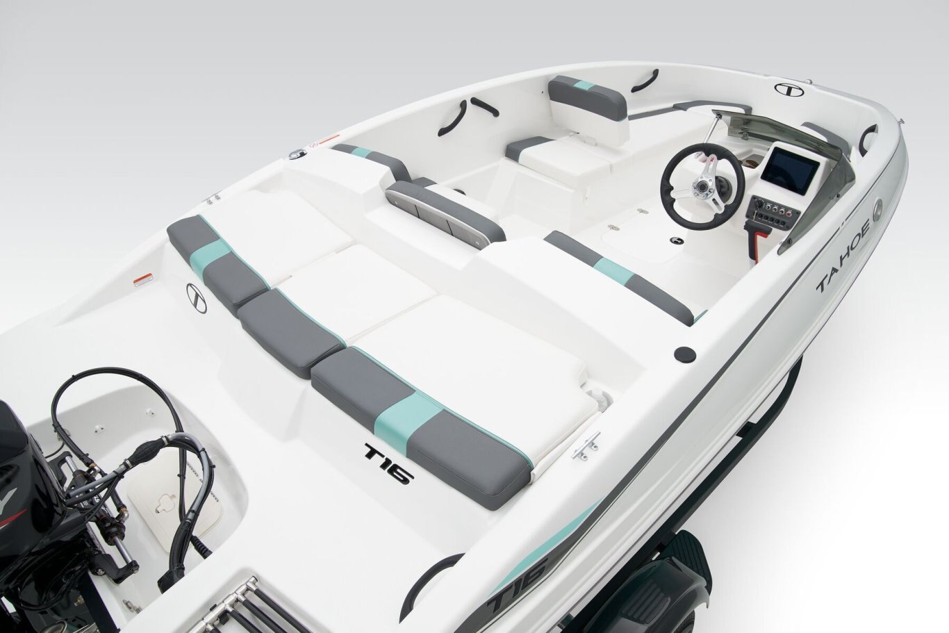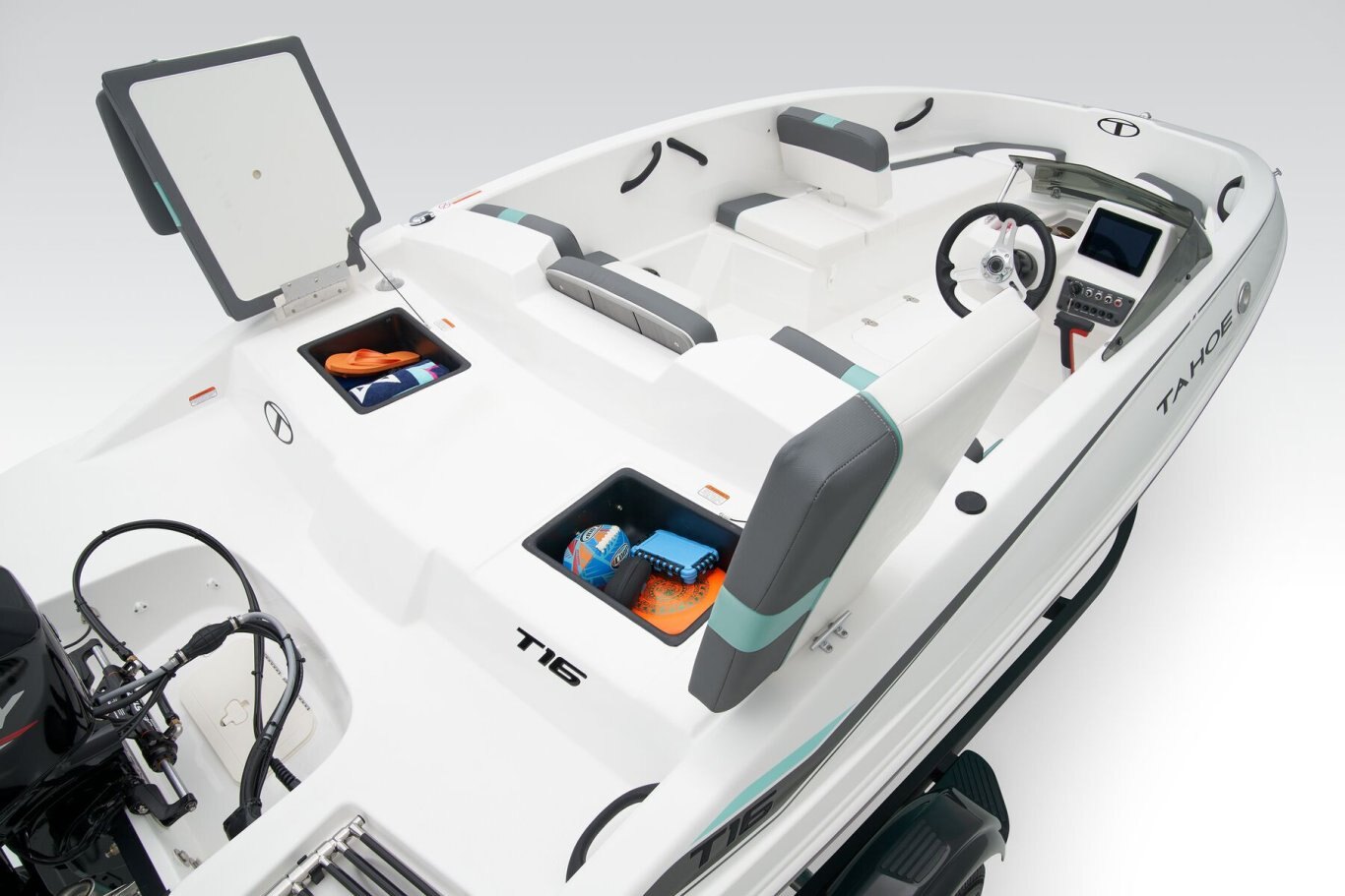 This affordable introduction to the TAHOE® family is a 6-passenger sports boat built to perform. Its POWERGLIDE® hull design features HYDROSTEP strakes that deliver exciting and stable riding experiences. Use the 7" TAHOE CRUISE touch screen to monitor GPS-accurate speed, water depth, your motor's vitals, and more. Opt for the available TurboSwing® to prepare your T16 for watersports.