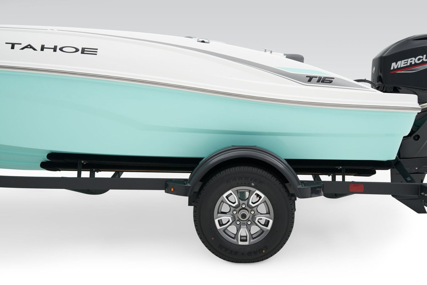 The 2026 TAHOE® T16 comes standard with a 60hp Mercury® ELPT FourStroke outboard motor and has a recommended maximum 75hp rating. This model is packaged with a trailer.