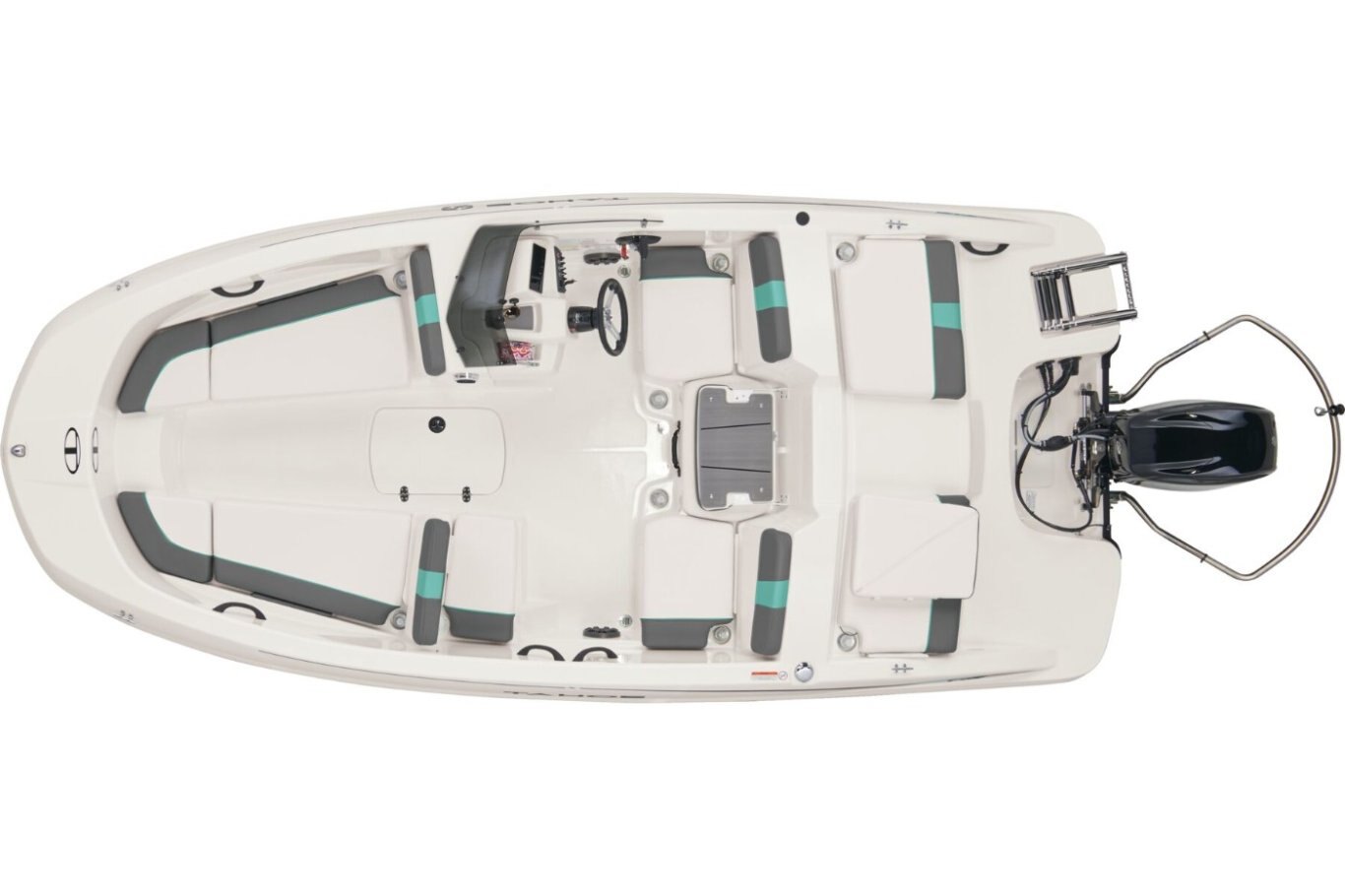 Relax on the water in this boat's midship bench seating and twin forward lounges with under-seat storage. The bow seats have reversible backrests that turn them into spotter seats. Lay out on the aft sun pad when you find your cove. The 4-step telescoping aft boarding ladder makes it easy to get back on the swim platform after diving into the water. Flip-up seat cushions and flip-down seat backs let passengers board the boat without stepping on upholstery. Claim 1 of the 9 drink holders, find your song on the 2-speaker Kicker® stereo, and search for excitement on the water!