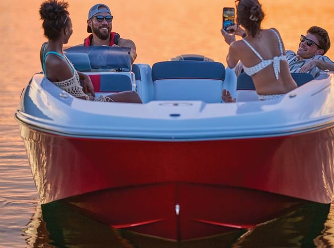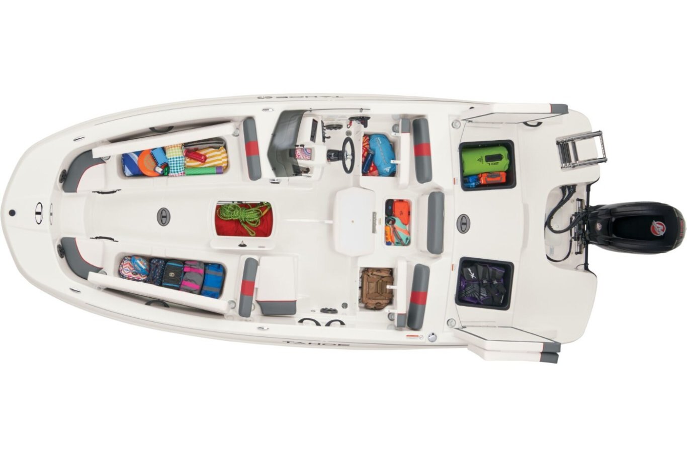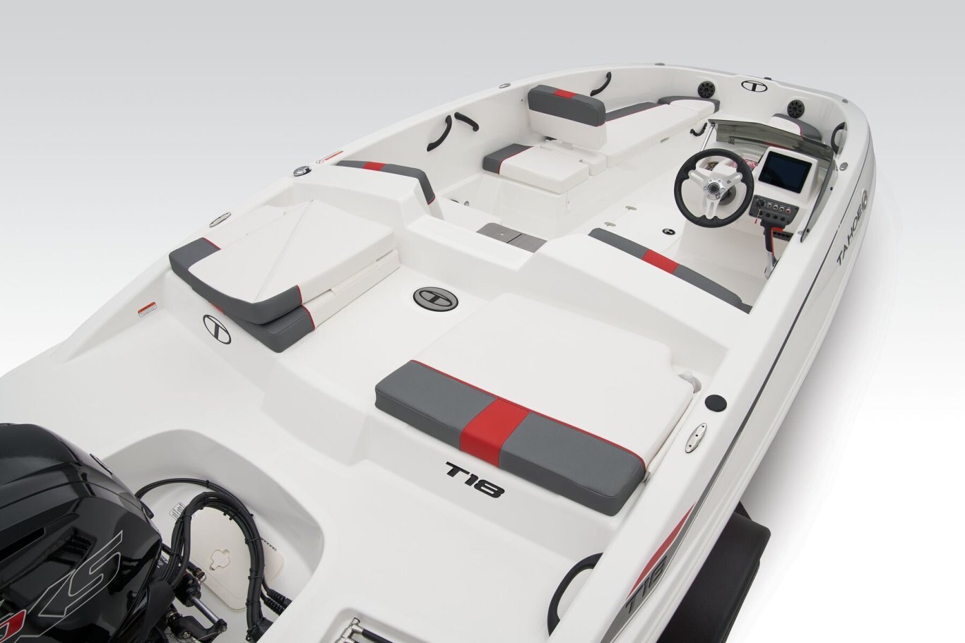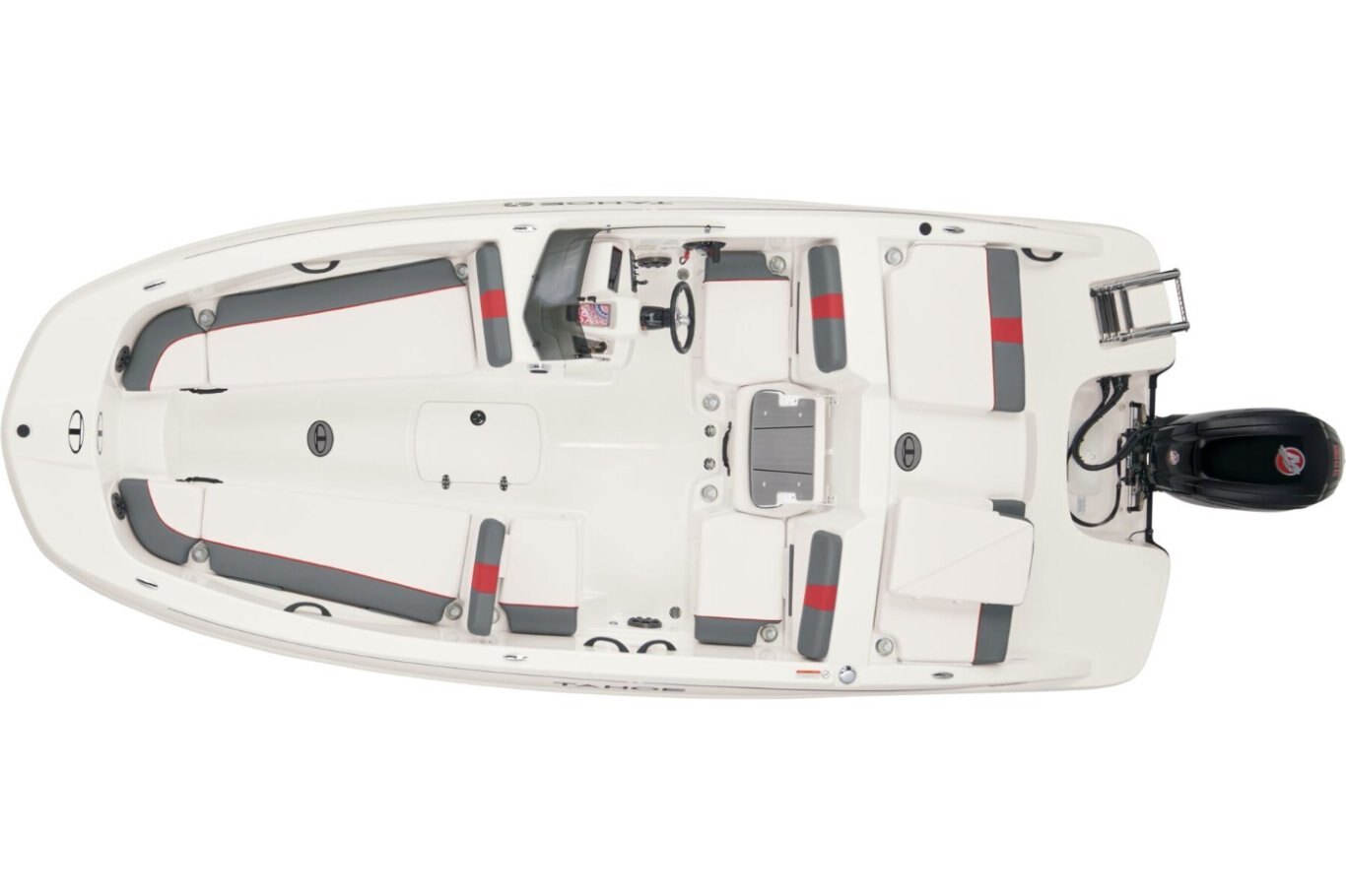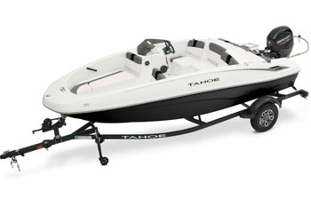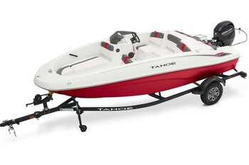 This 9-passenger midsize runabout boat is built for performance, complete with a POWERGLIDE® hull with HYDROSTEP strakes. The pilot's console features a 7" touch screen that delivers information such as motor vitals, speed, and depth. Play your adventure's soundtrack through the 4-speaker Kicker® stereo as you pull tubes, skiers, and wakeboarders with the optional TurboSwing® ski tow bar. Ample in-floor storage keeps your snacks, towels, and safety equipment secure and out of the way. The aft swim platform with a 4-step telescoping boarding ladder makes it easy to jump in and out of the water. Find your favorite seat in the 3-across midship bench, dual forward lounges, or aft sun pad. The port bow backrest can be reversed for forward or aft seating and its cushion can even be flipped up so passengers don't step on the upholstery as they board. Add the optional bimini top to create the perfect lake-day boat your friends and family will love! The 2026 TAHOE® T18 comes standard with a 90hp Mercury® ELPT FourStroke outboard motor and has a recommended maximum 115hp rating. This model is packaged with a trailer. |