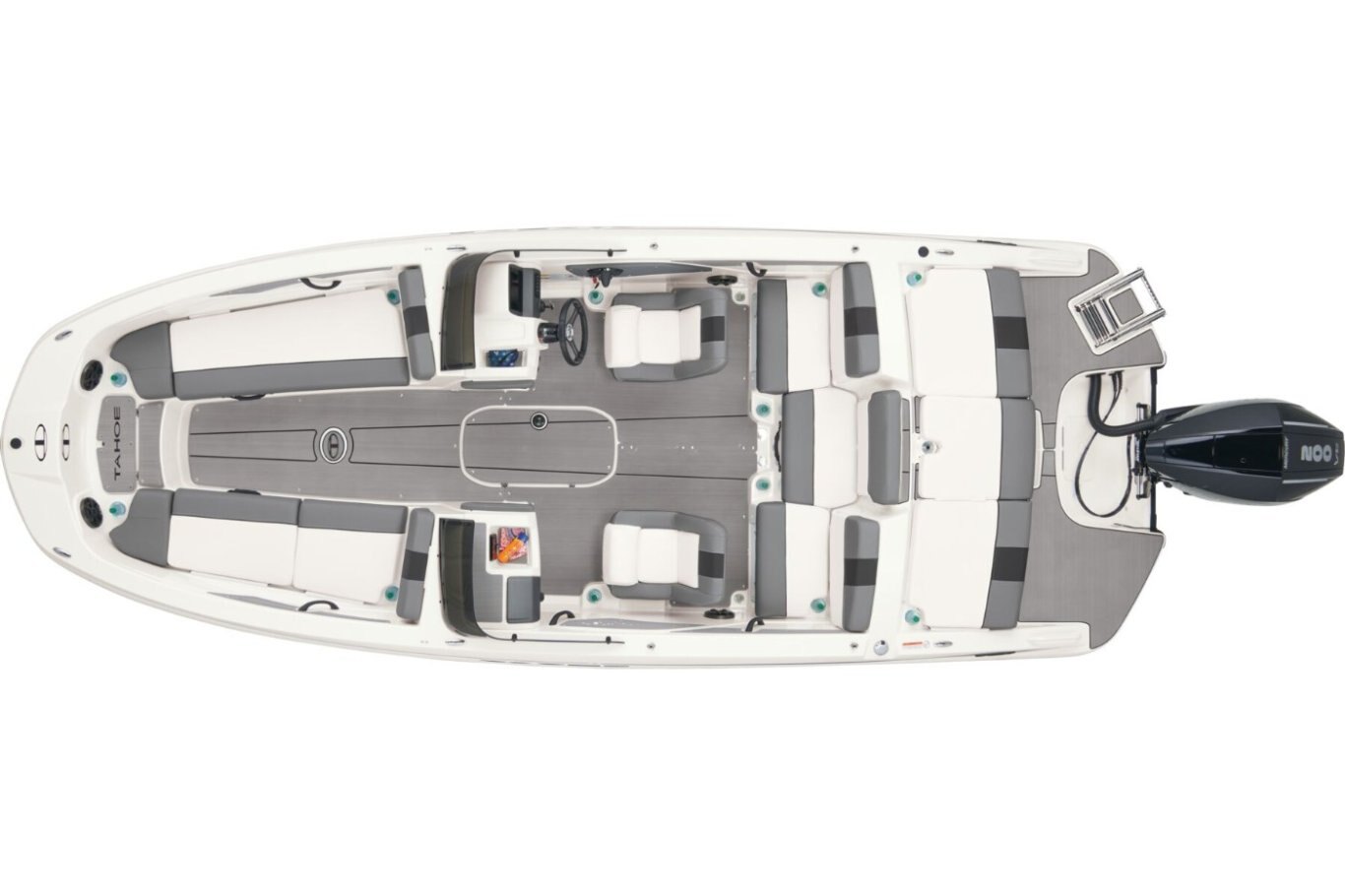 The 2026 TAHOE® T21 comes standard with a 150hp Mercury® XL Pro XS® FourStroke outboard motor and has a recommended maximum 200hp rating. This model is packaged with a trailer.