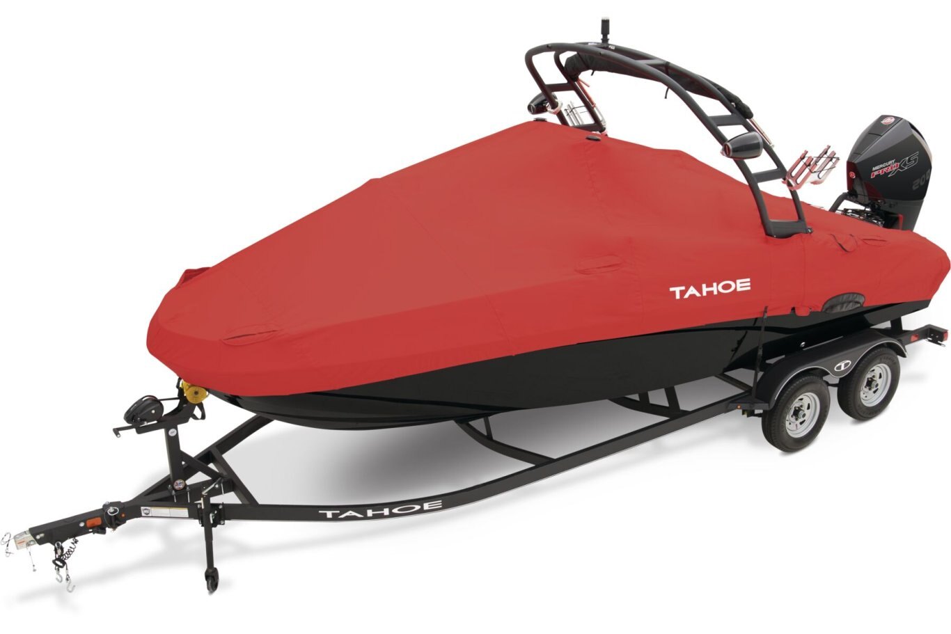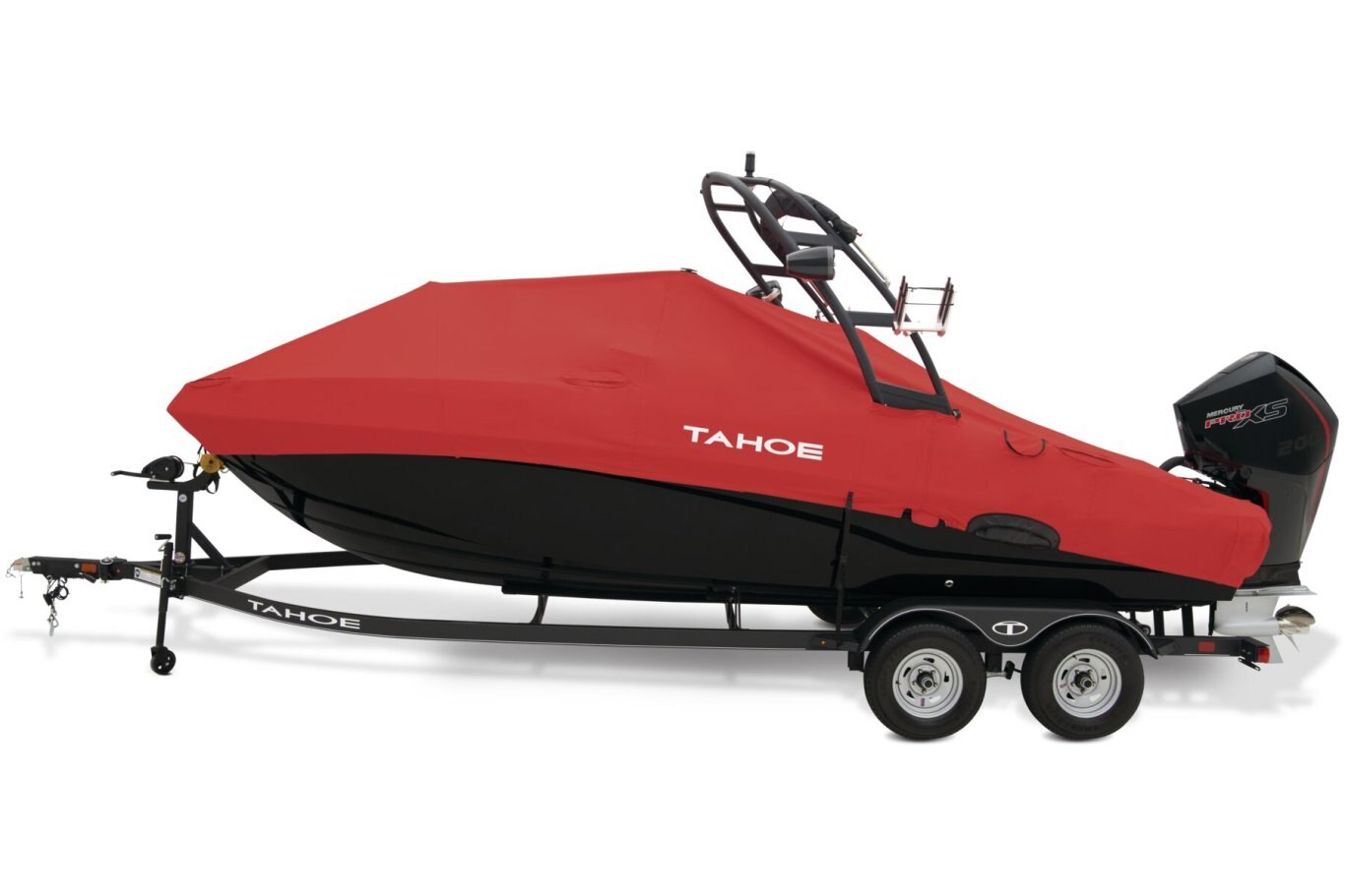 Trailerable ratchet mooring cover that fits w/wakeboard tower—Black (Black hull), Light Gray (Mint hull) or Red (White & Red hulls)