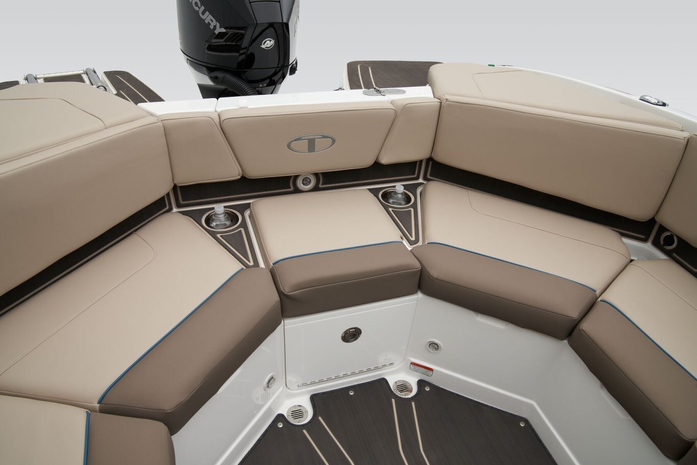 • Aft U-lounge w/storage & integrated 38-qt. (35.96 L) cooler w/overboard drain