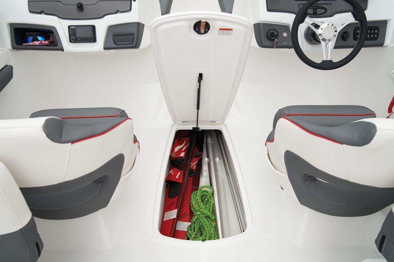 • In-floor wakeboard/ski storage compartment w/hold-open lid assist
