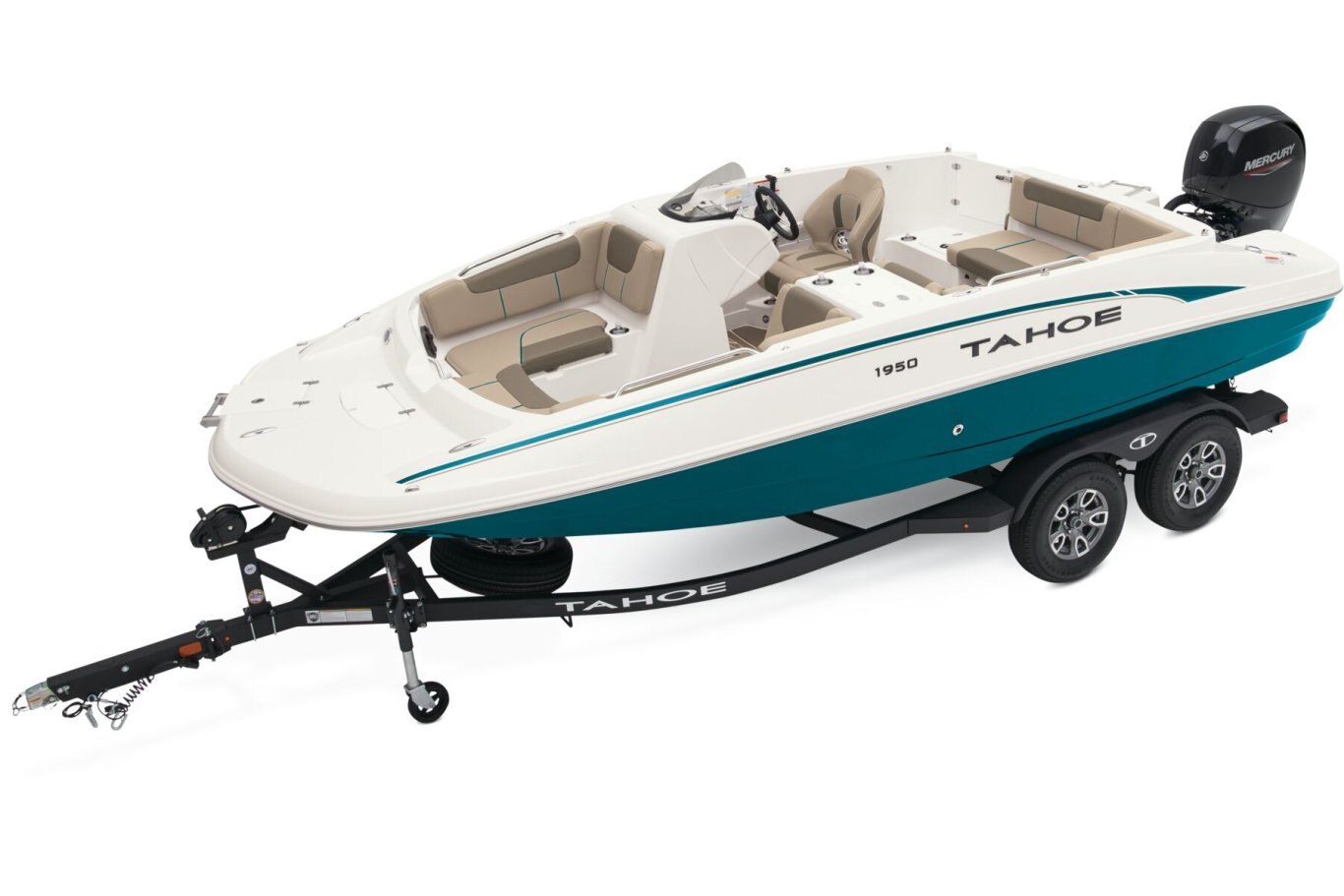 2026 Tahoe 1950 Solid Harbor Blue hull gelcoat w/Sand Dollar interior color themePrepare yourself for life on the water with the 2026 TAHOE® 1950 deck boat. Whether you're here for the fishing, relaxing with friends, or exploring the coastline, this TAHOE® is your ideal aquatic headquarters.