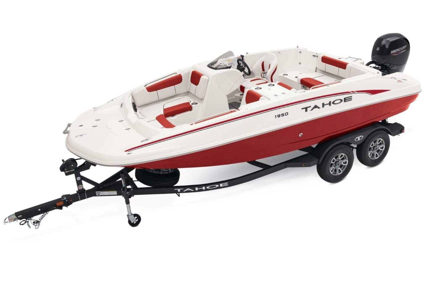 2026 Tahoe 1950 Solid Red hull gelcoat w/White interiorPrepare yourself for life on the water with the 2026 TAHOE® 1950 deck boat. Whether you're here for the fishing, relaxing with friends, or exploring the coastline, this TAHOE® is your ideal aquatic headquarters.