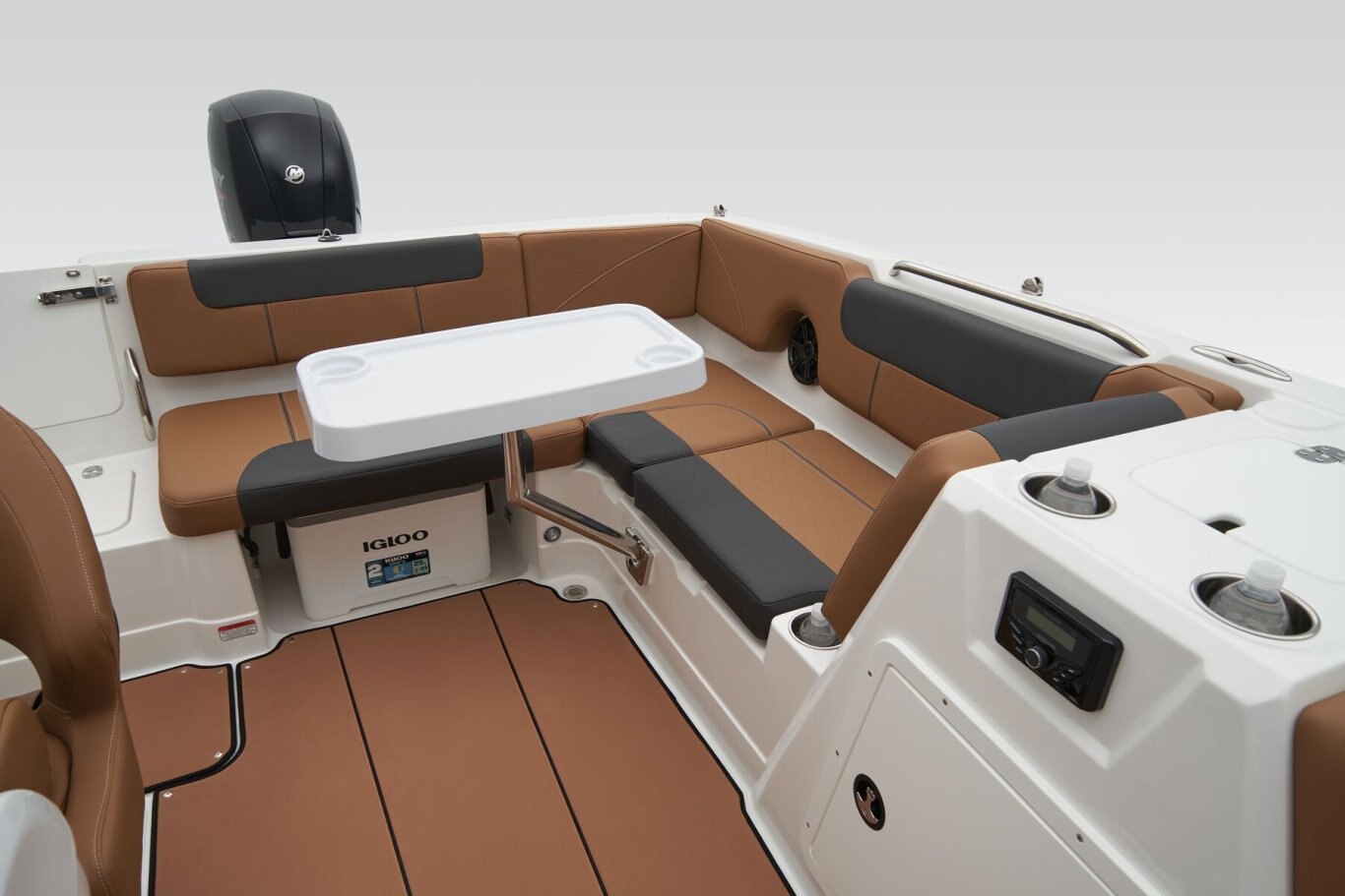 • Aft L-lounge w/storage, tow rope holder & removable 25-qt. (23.66 L) cooler