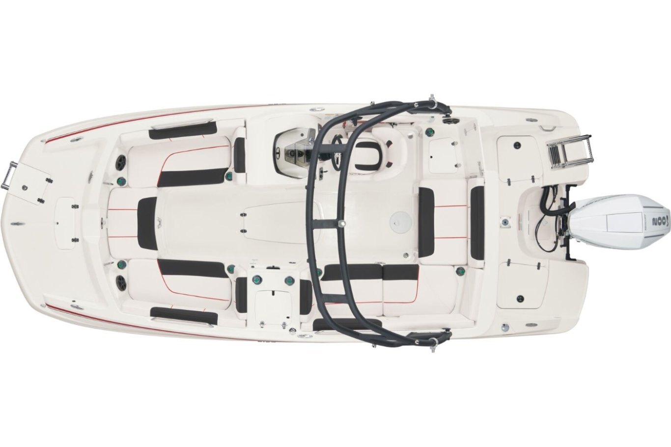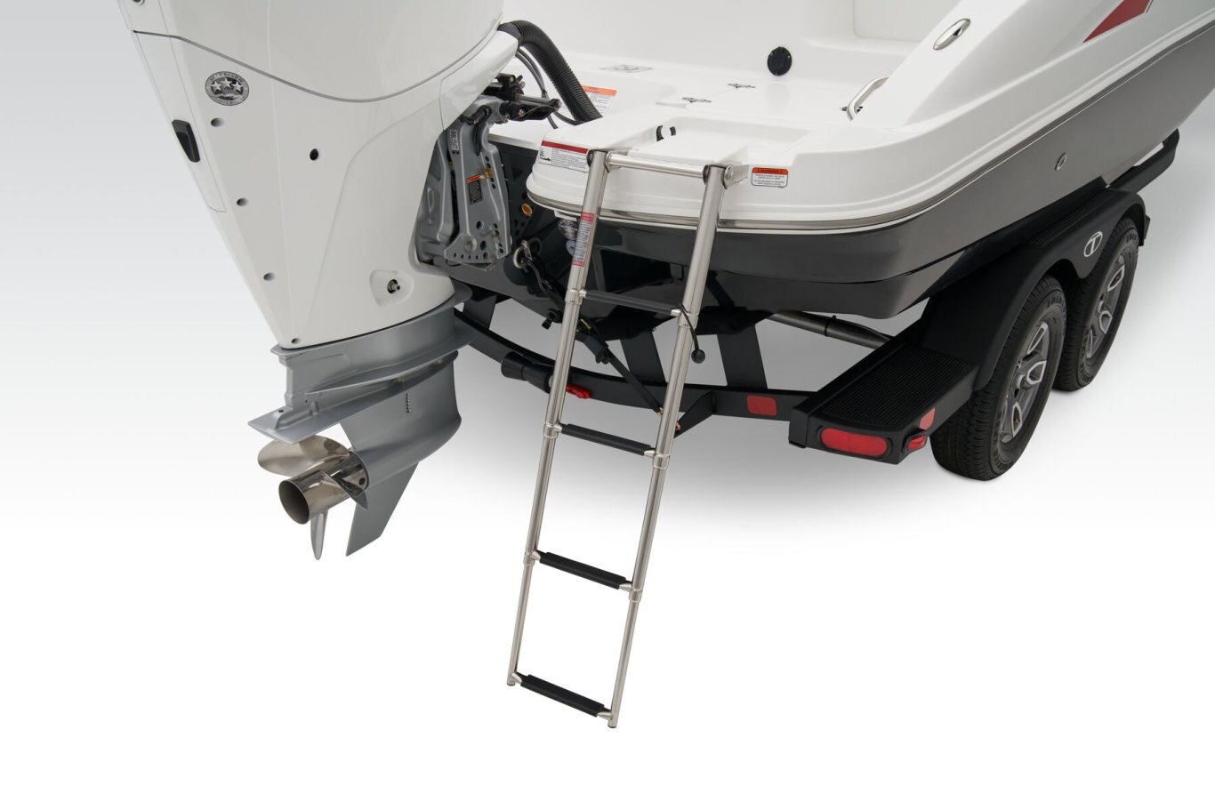 For the fishers, there's the 15-gal. aerated livewell with a pull-out sprayer and rod holders. An available fishing package adds a trolling motor, fish finder, and dual fishing seats. Thrill-seekers will love the in-floor wakeboard and ski storage compartment, standard removable ski-tow pylon, and 4-speaker Kicker® stereo with Bluetooth® compatibility. Pull up the bimini top and relax while the kids jump off the swim platform and get back on the