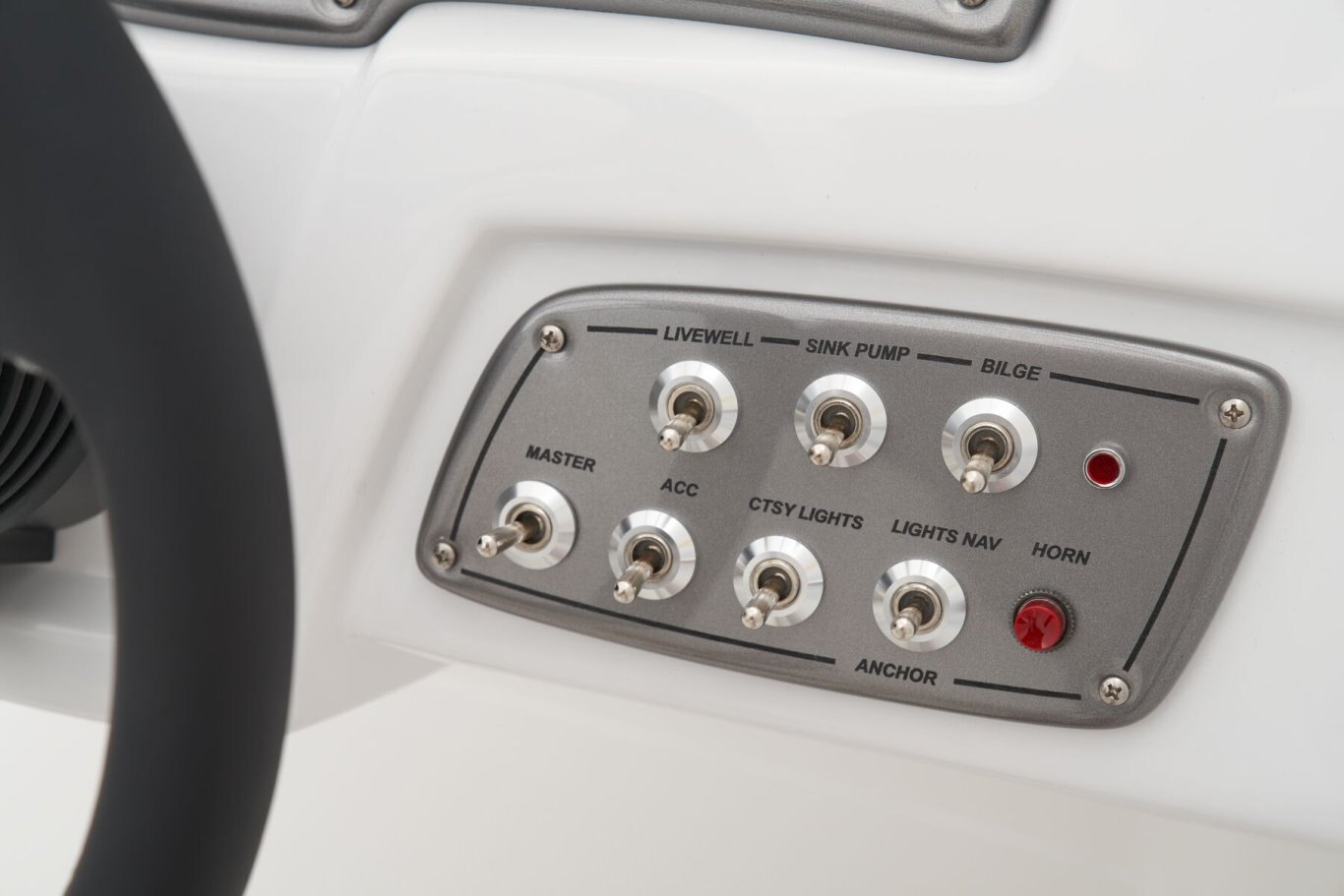 • Bow 15-gal. (56.78 L) aerated livewell w/500 GPH (1,892.71 LPH) pump, gravity drain, adjustable spray head & dash-mounted switch