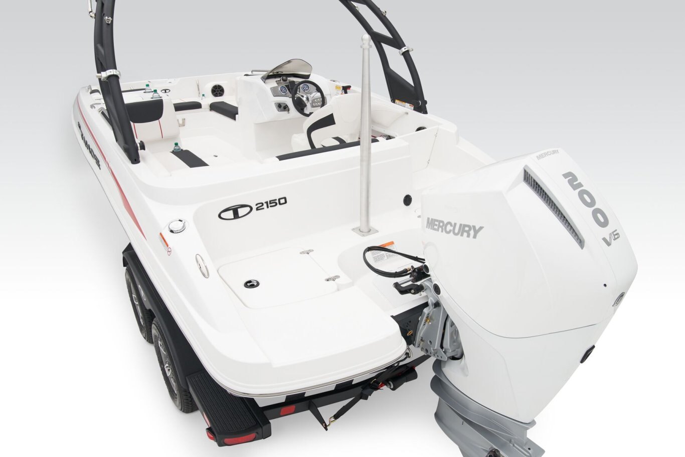 The 2026 TAHOE® 2150 comes standard with a 150hp Mercury® XL Pro XS® FourStroke outboard motor and has a recommended maximum 225hp rating.