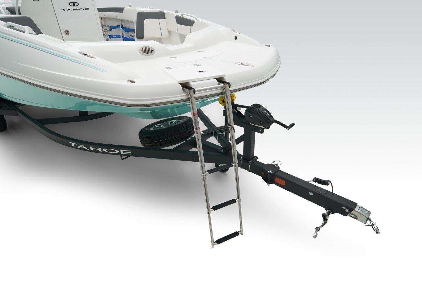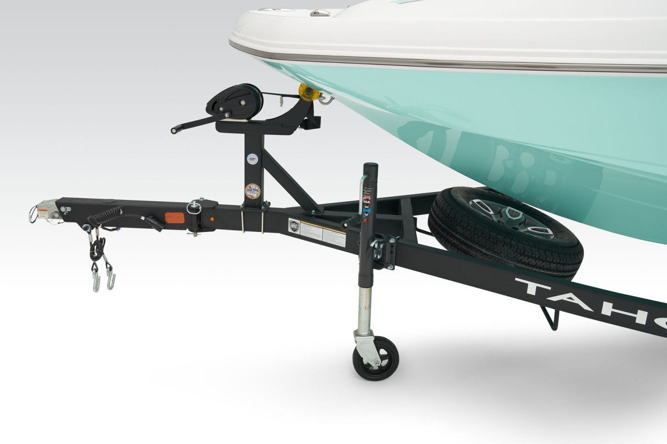 Custom-fit, tandem-axle trailer w/GALVASHIELD® Impact corrosion protection; 14" (35.56 cm) aluminum wheels w/radial tires & spare tire; & brakes on both axles — includes fold-away tongue jack; space-saving, swing-away tongue; heavy duty winch w/nylon strap & bow safety strap; safety cables; & LED submersible lights (additional freight charge applies for standalone trailer purchase)