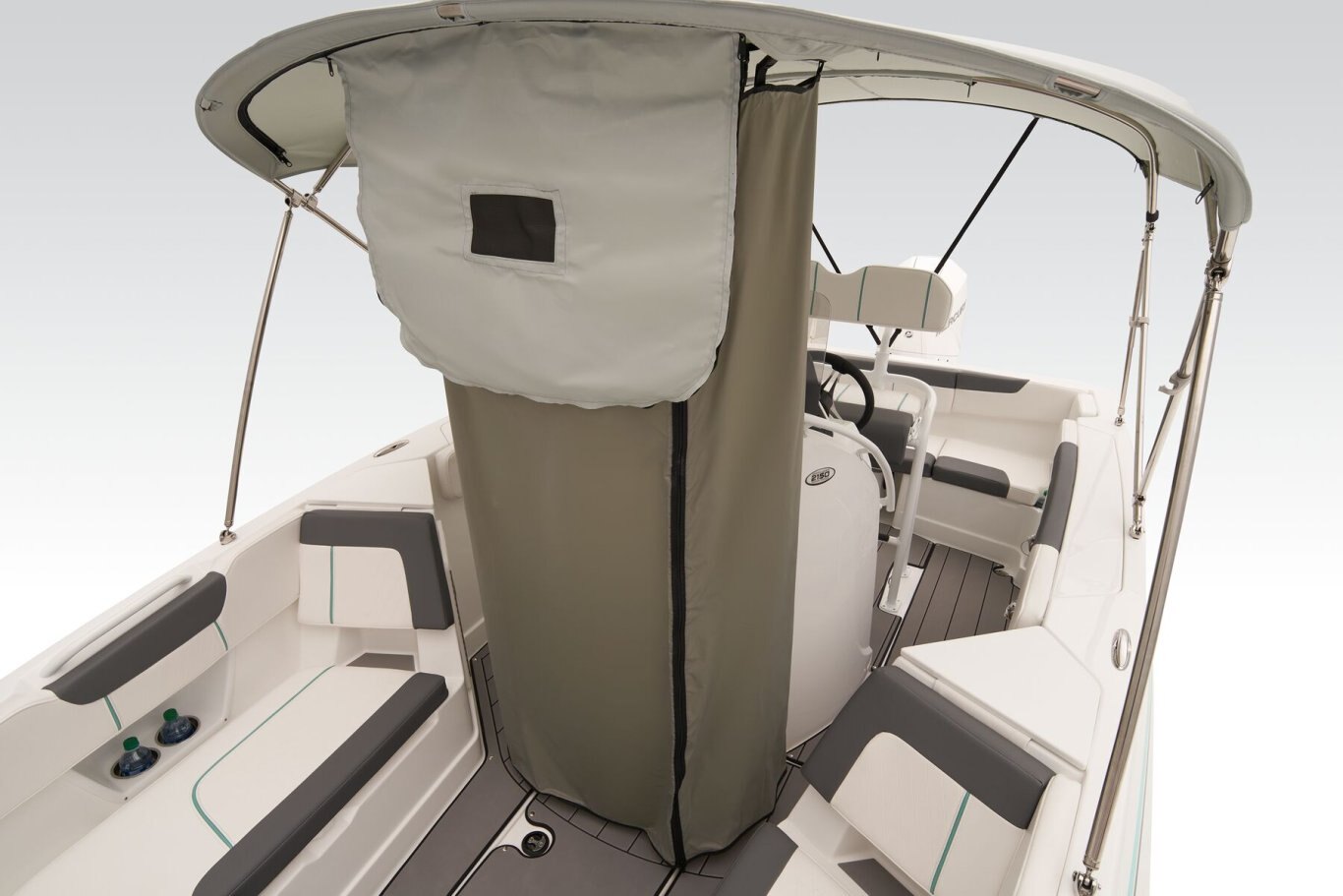 • Bimini top w/aluminum frame & boot—Charcoal (Trigger Gray hull), Light Gray (Mint hull), Harbor Blue (Harbor Blue hull) or Sand (White hull)
