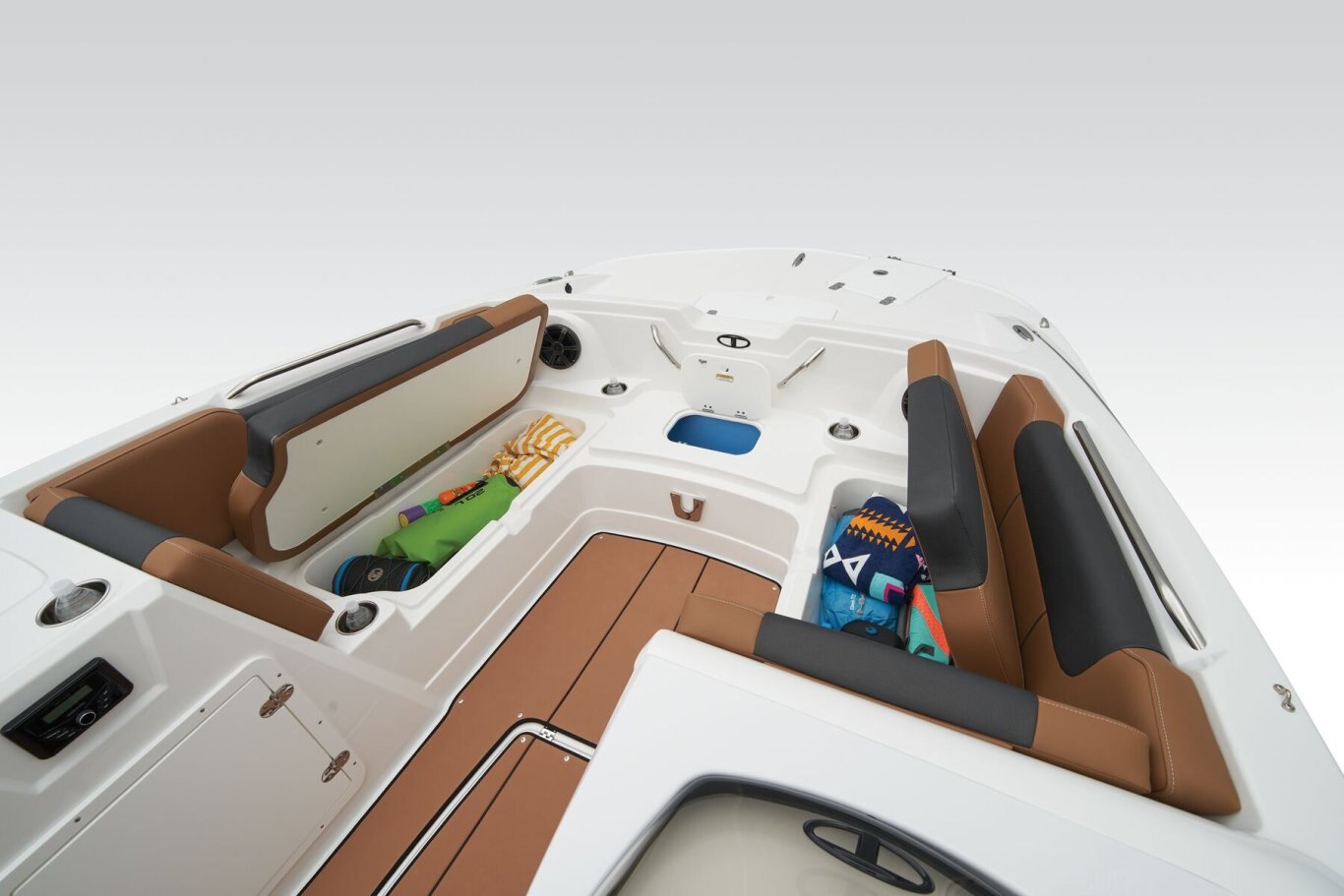 • Aft L-lounge w/storage, tow rope holder & removable 25-qt. (23.66 L) cooler