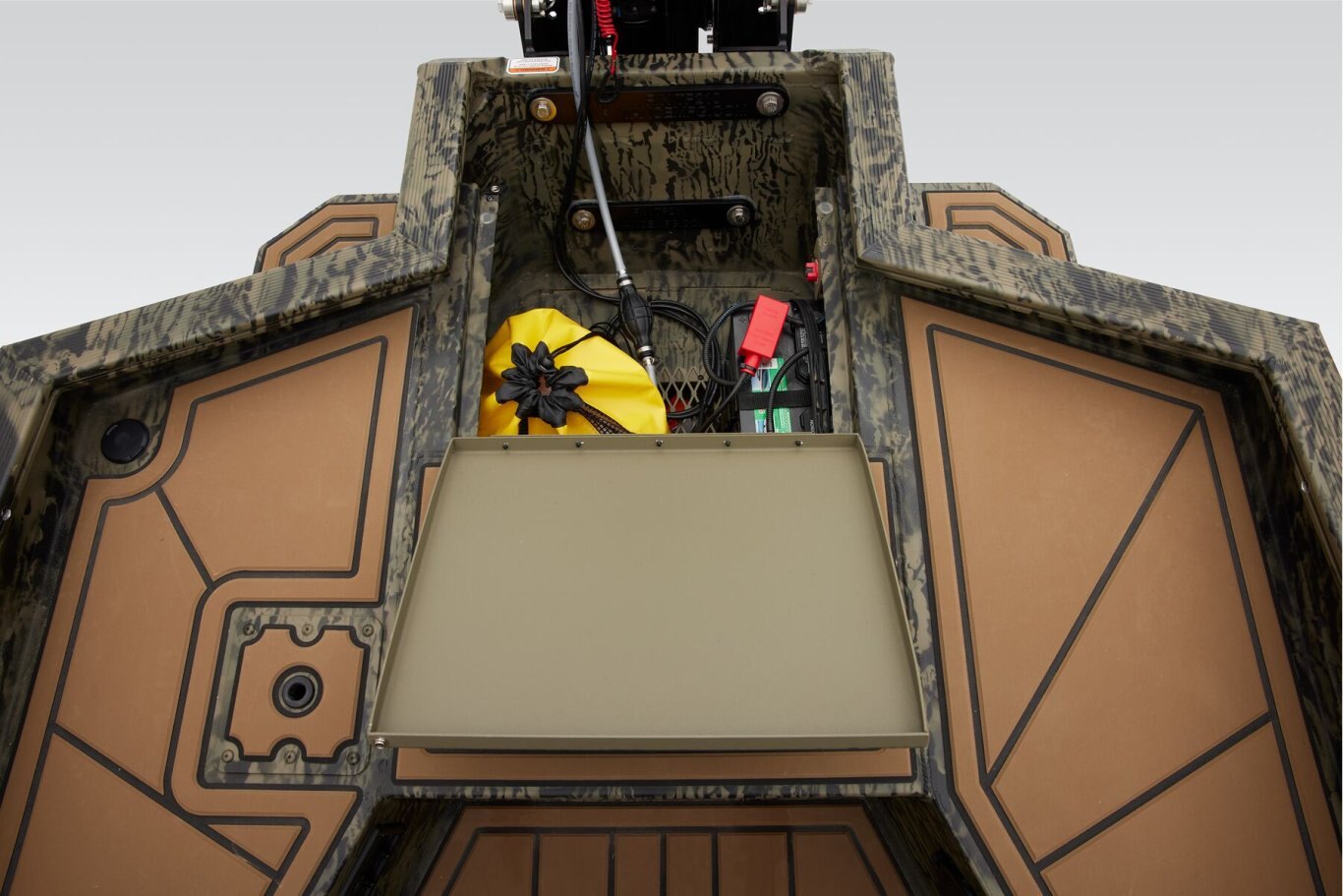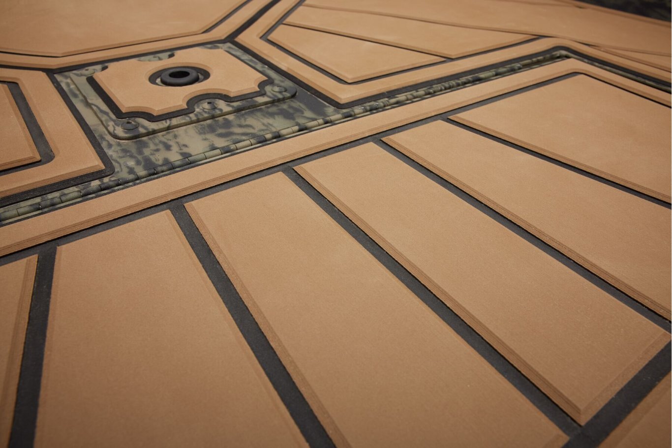 The cockpit and decks are coated with Sure Tread™ flooring that offers superior grip in any conditions. Bow and stern pedestal seating locations offer versatility while hunting or when underway, and easy-to-reach switching offer simple, reliable control over the boat's functions.
