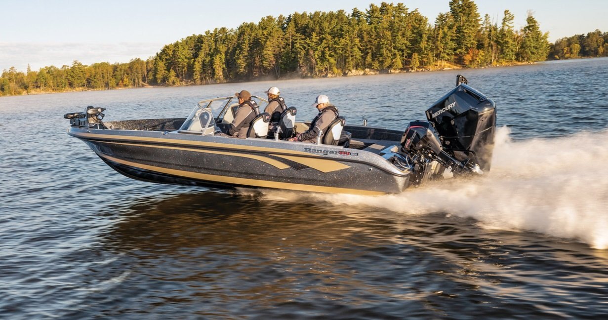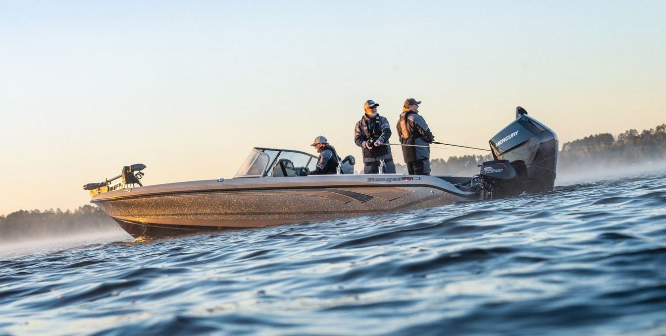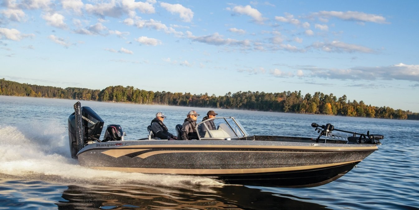 The monster front deck is the largest we’ve ever featured on a Deep V, and its size continues underneath, where you can stow a cache of rods up to 9’ with a wealth of tackle and gear. The cockpit is equally massive and offers storage for dozens of tackle boxes, more rods, and your winning stringer in the oversized livewell. A standard Ranger RIDE system keeps tabs on your outboard as well as gives you control of every major boat function—all in one 8” touchscreen. The consoles feature a premium stitched finish for a high-class automotive feel that match the brushed aluminum speaker grilles and handles and the shock-absorbing SRS Soft Ride™ seating.