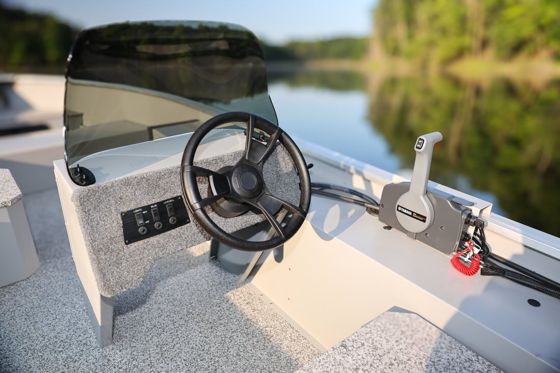 ​​​We’re proud to introduce a new series of heavy duty aluminum fishing boats that are based on our classic hull design that has been seen on the water for decades. With the 3672 and 3673 Laker we definitely made a good thing even better. We widened the beam on this legend to a full 74” wide to gain the needed elbow room desired by bass and walleye anglers today. Additionally we increased the bow depth and included much stronger gunwales. A number of options are available to improve your time on the water as well. The end result is an aluminum fishing boat that can withstand the rigors of day-in and day-out use. These two models are true workhorses and we didn’t forget the performance as they are rated for 30HP and are design to carry a full 1250 lbs.  Available in a tiller version or side console.  Pictures show it with console.