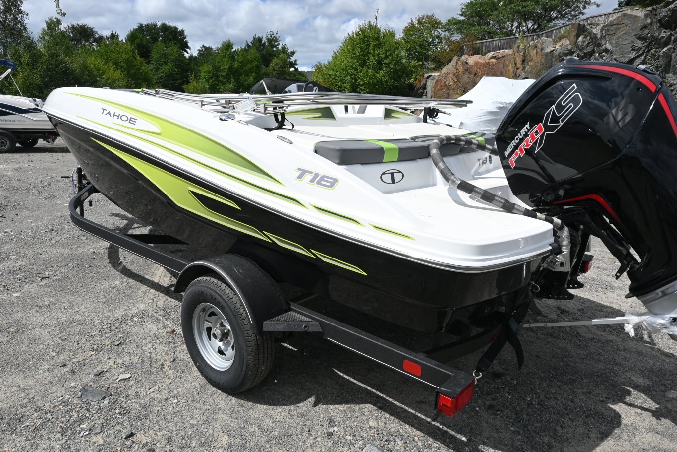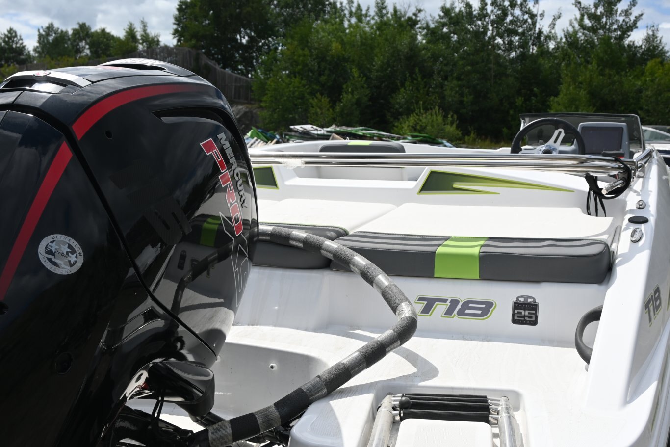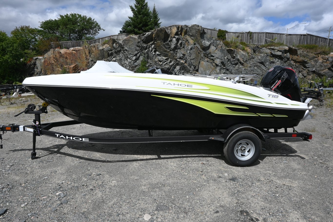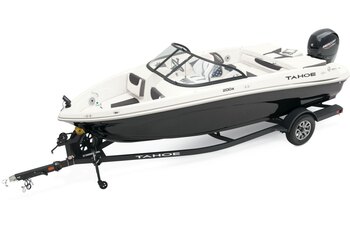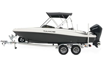 Add some full-throttle excitement to your lake days with the 2025 TAHOE® T18! This 9-passenger midsize runabout boat is built for performance, complete with a POWERGLIDE® hull with HYDROSTEP strakes. The pilot's console features a 7" touch screen that delivers information such as motor vitals, speed, and depth. Play your adventure's soundtrack through the 4-speaker Kicker® stereo as you pull tubes, skiers, and wakeboarders with the optional TurboSwing® ski tow bar. Ample in-floor storage keeps your snacks, towels, and safety equipment secure and out of the way. The aft swim platform with a 4-step telescoping boarding ladder makes it easy to jump in and out of the water. Find your favorite seat in the 3-across midship bench, dual forward lounges, or aft sun pad. The port bow backrest can be reversed for forward or aft seating and its cushion can even be flipped up so passengers don't step on the upholstery as they board. Add the optional bimini top to create the perfect lake-day boat your friends and family will love! The 2025 TAHOE® T18 comes standard with a 90hp Mercury® ELPT FourStroke outboard motor and has a recommended maximum 115hp rating. This model is packaged with a trailer. |