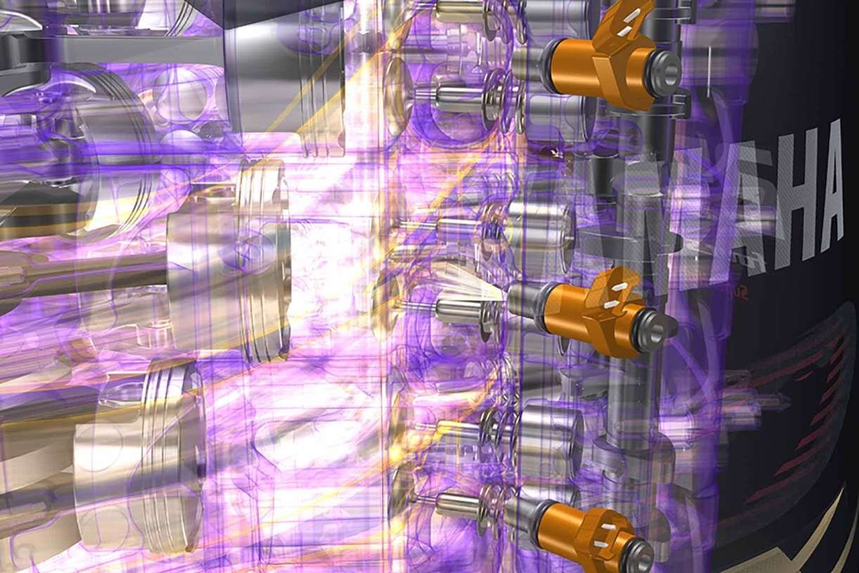By using a highly advanced thermally applied plasma fusion process on the cylinder walls, the V MAX SHO has no conventional steel cylinder sleeves, yet the cylinder walls are 60% harder than steel. That means larger cylinder bores for increased displacement, resulting in more power and torque, without increasing outer cylinder dimensions.