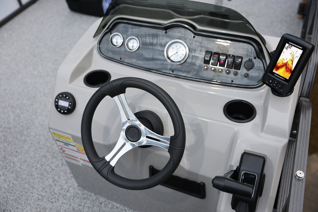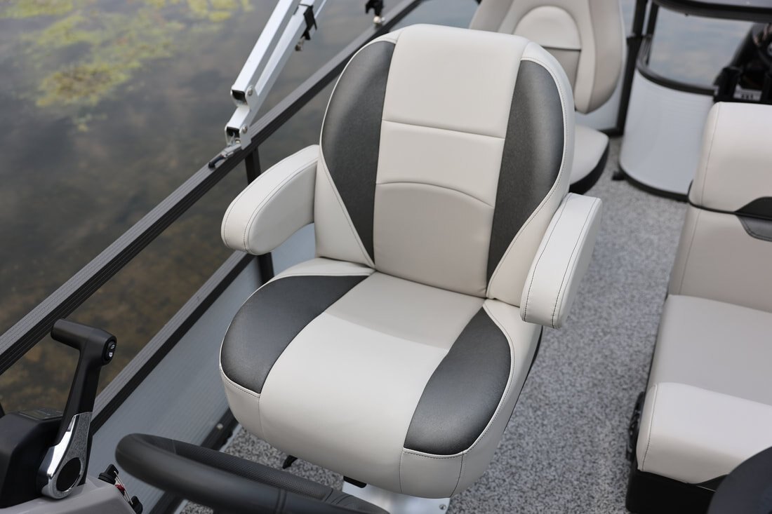 Our 6 models of fishing pontoons range from a highly maneuverable 16 footer and get as large as 22 feet. These fishing machines have the best value in the market. The most discriminating angler will surely find a model to fit his or her needs. All of our fishing pontoons are 8.5' wide and come with 25" tubes.  A 50Qt livewell, rod holders and premium fishing seats are standard features.   Couple that with our rear entry, rear boarding ladder, asiago vinyl and comfortable helm chair and you won't find a nicer fishing pontoon in the market.