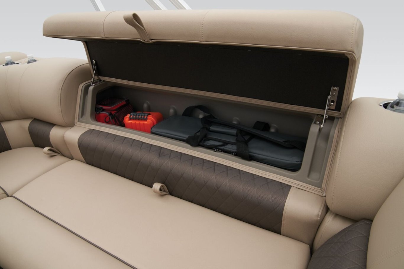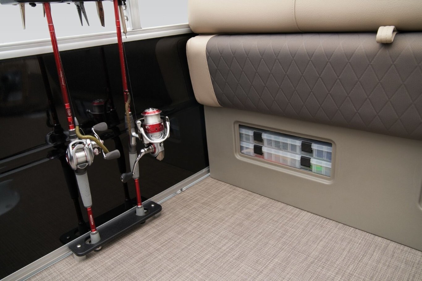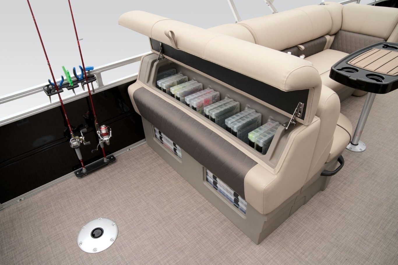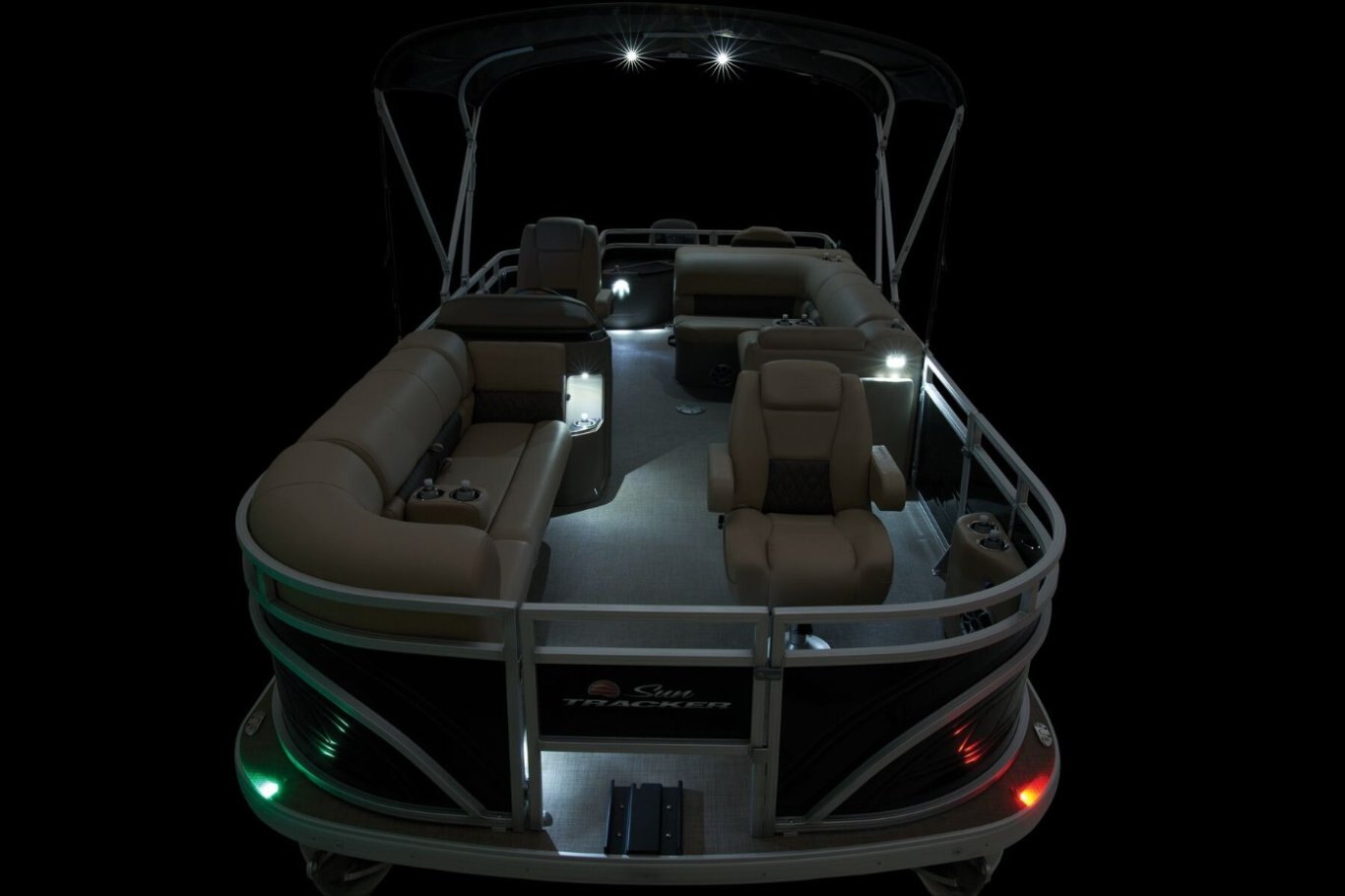Get the best of 2 worlds with the 2025 SPORTFISH™ 20 DLX. This pontoon boat offers a space built for both serious fishing trips and days of fun on the water for up to 10 friends and family. Spend the day casting lines from the fore fishing captain's chair or the comfortable aft folding chair. These fishing stations feature an aft aerated livewell, drink holders, and rod holders. Navigate to the next fishing spot in the helm's captain's chair and the ergonomic console with a SUN TRACKER FLARE touchscreen, built-in storage space, and soft-touch steering wheel. Between fishing sessions, relax on the 2 lounges that also feature the STOW MORE™ system, which puts storage spaces under the seats and behind the seat backs. The 9' QuickLift® bimini top and Wet Sounds® stereo with Bluetooth® and 2 upholstery speakers let you create the perfect hangout space on the water. Access the deck via 1 of the 3 inward-swinging gates. After cannonballing into the lake, you can return easily using the aft reboarding platform's telescoping ladder. The SPORTFISH™ 20 DLX comes standard with a 60hp Mercury® ELPT FourStroke outboard motor and has a recommended maximum 90hp rating. |