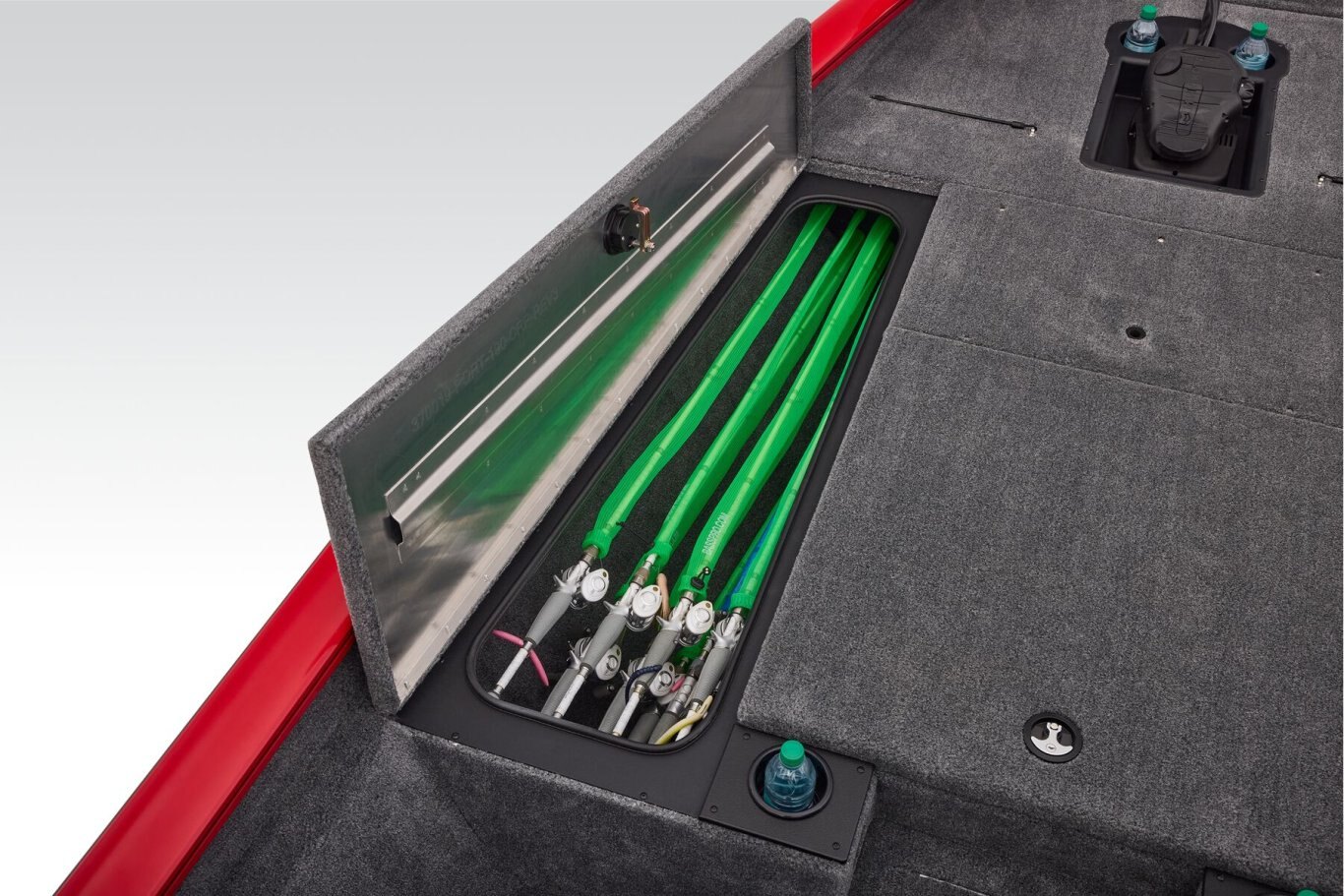 • Bow port & starboard rod storage w/large lids & rod organizers w/tubes—16 total rods up to 8' (2.44 m) casting/7' (2.13 m) spinning