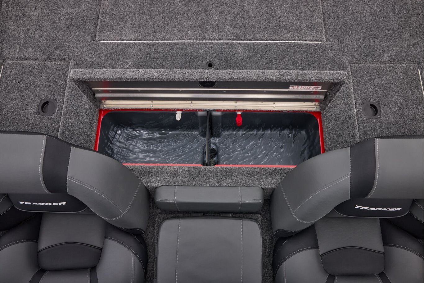 • Aft 21-gal. (79.49 L) aerated livewell w/divider, timer, recirculator, pump-out system & oversized overflow drain