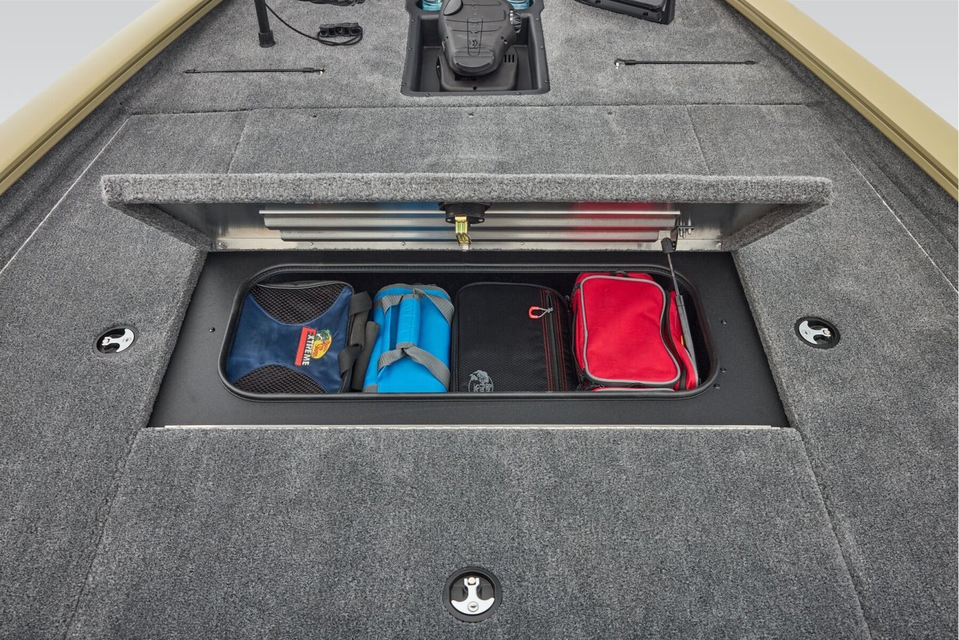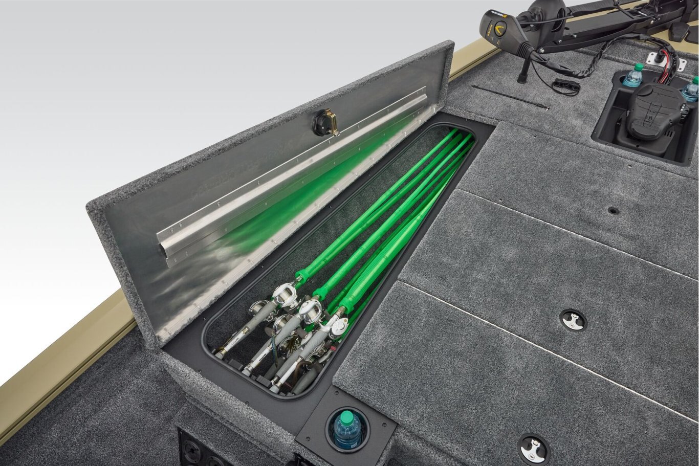 • Bow port & starboard rod storage w/large lids & rod organizers w/tubes—24 total rods up to 9' (2.74 m) casting/8' (2.44 m) spinning