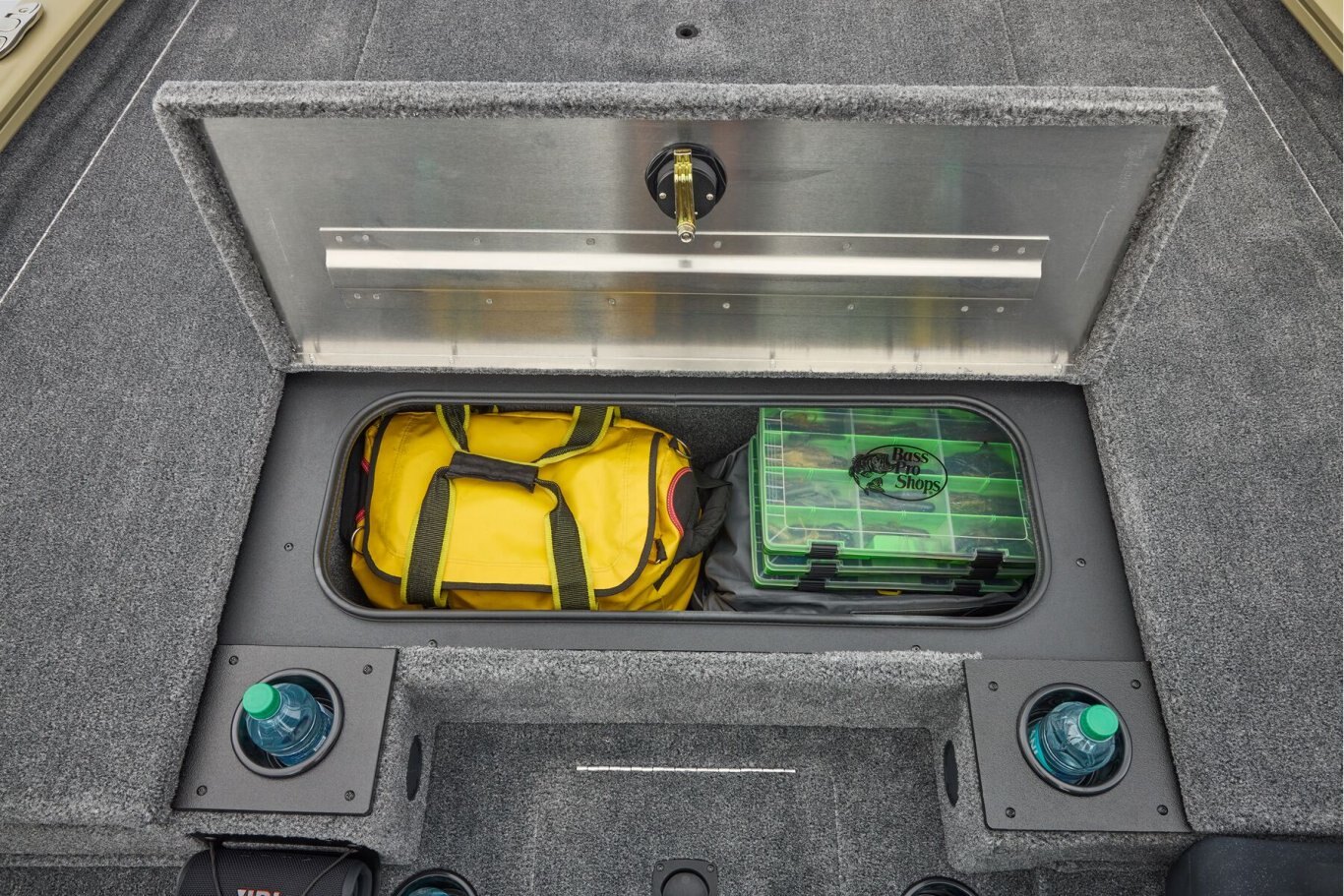 • 8 drink holders—2 on bow deck, 2 in bow tackle storage, 2 on step cooler & 2 floor mounted