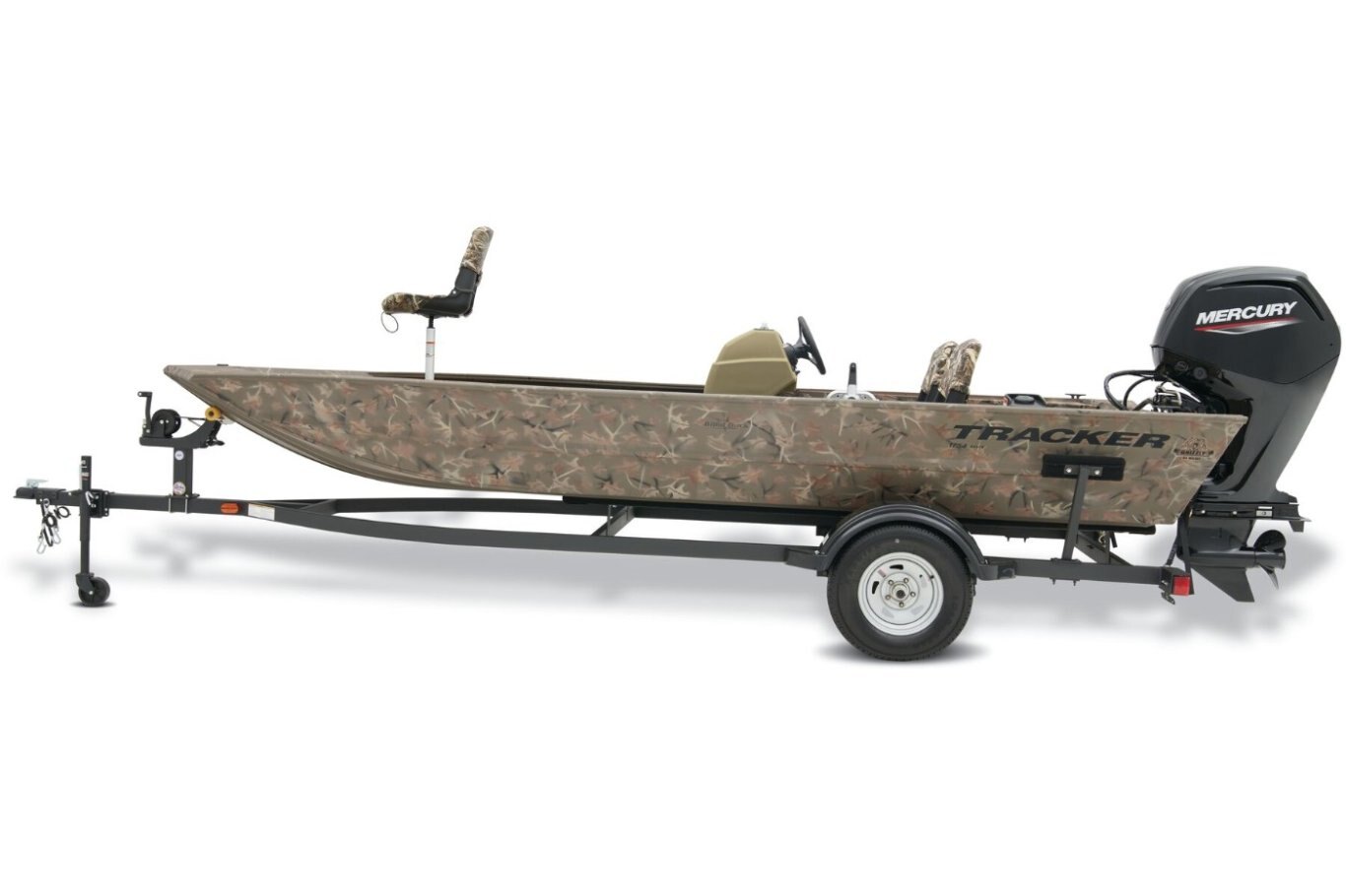 | Step aboard the TRACKER® GRIZZLY® 1754 SC, a roomy and steady aluminum jon boat measuring 17' 1" in length and 6' 6" wide, offering ample space for your fishing or recreational outings. Capable of accommodating up to a 75HP motor, this versatile boat is equipped with a lockable bow deck storage compartment, ensuring that your gear stays secure and organized during your adventures on the water. The 1754 SC features a 7° deadrise hull design, providing a smooth and dry ride even in choppy waters. With a solid .190 aluminum floor and welded-in, foam-filled sides, this boat offers increased structural integrity and reduced hull noise, enhancing your overall boating experience. The fully welded hull, unitized to the all-aluminum box-beam transom via the full-length longitudinal stringer system, ensures exceptional durability and reliability in various water conditions. Backed by the TRACKER PROMISE, the GRIZZLY 1754 SC offers the best factory warranty in aluminum boats, providing you with the assurance and confidence to enjoy your time on the water worry-free. Experience the power, versatility, and dependability of the TRACKER GRIZZLY 1754 SC, your ideal companion for exciting and memorable boating experiences. |