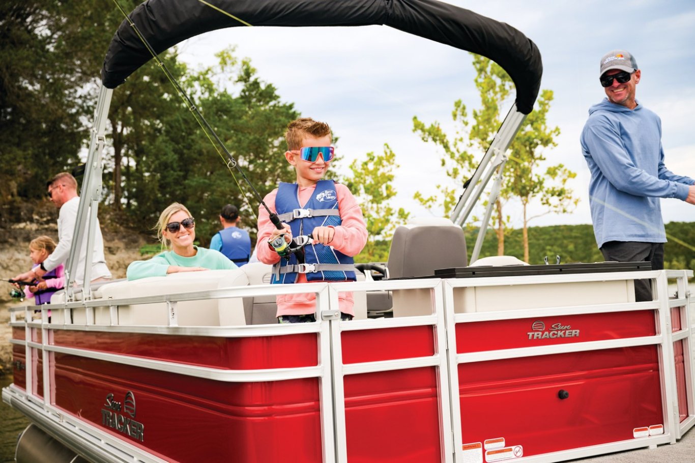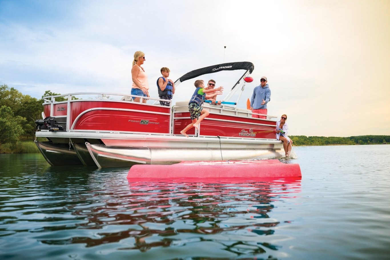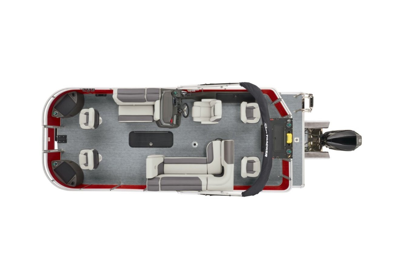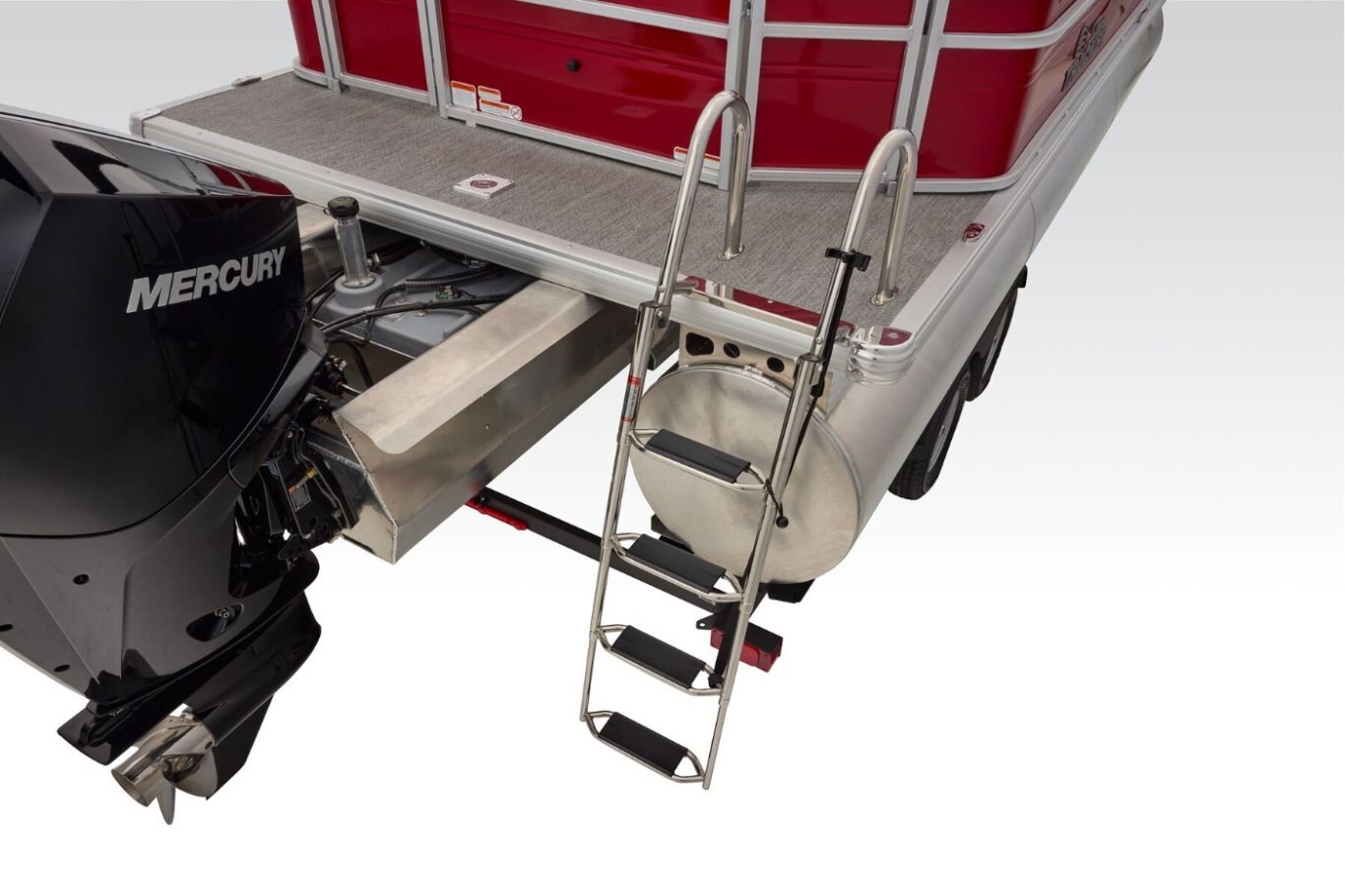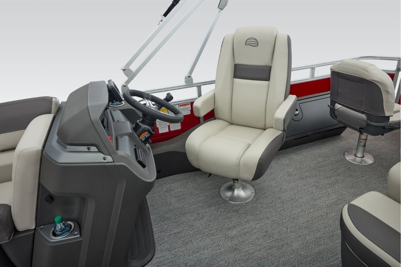 Captains can control it all with the SUN TRACKER FLARE™ touch-screen gauge display. Set up the 10' bimini top, grab your rod out of the lockable rod box, and post up in one of the two fishing decks—each of which sports a 16-gal. aerated livewell—and two swiveling fishing chairs next to rod and tool holders. The dual lounges or aft bench with hidden storage are ready for relaxation. The lounges’ all-new open section in the backrest increases accessible storage and even has extra cupholders. 2026 also brings a wider, ergonomic boarding ladder. The FISHIN' BARGE 22 XP3 is the most equipped fishing pontoon in the SUN TRACKER lineup. If you're looking for the best, you've found it. |