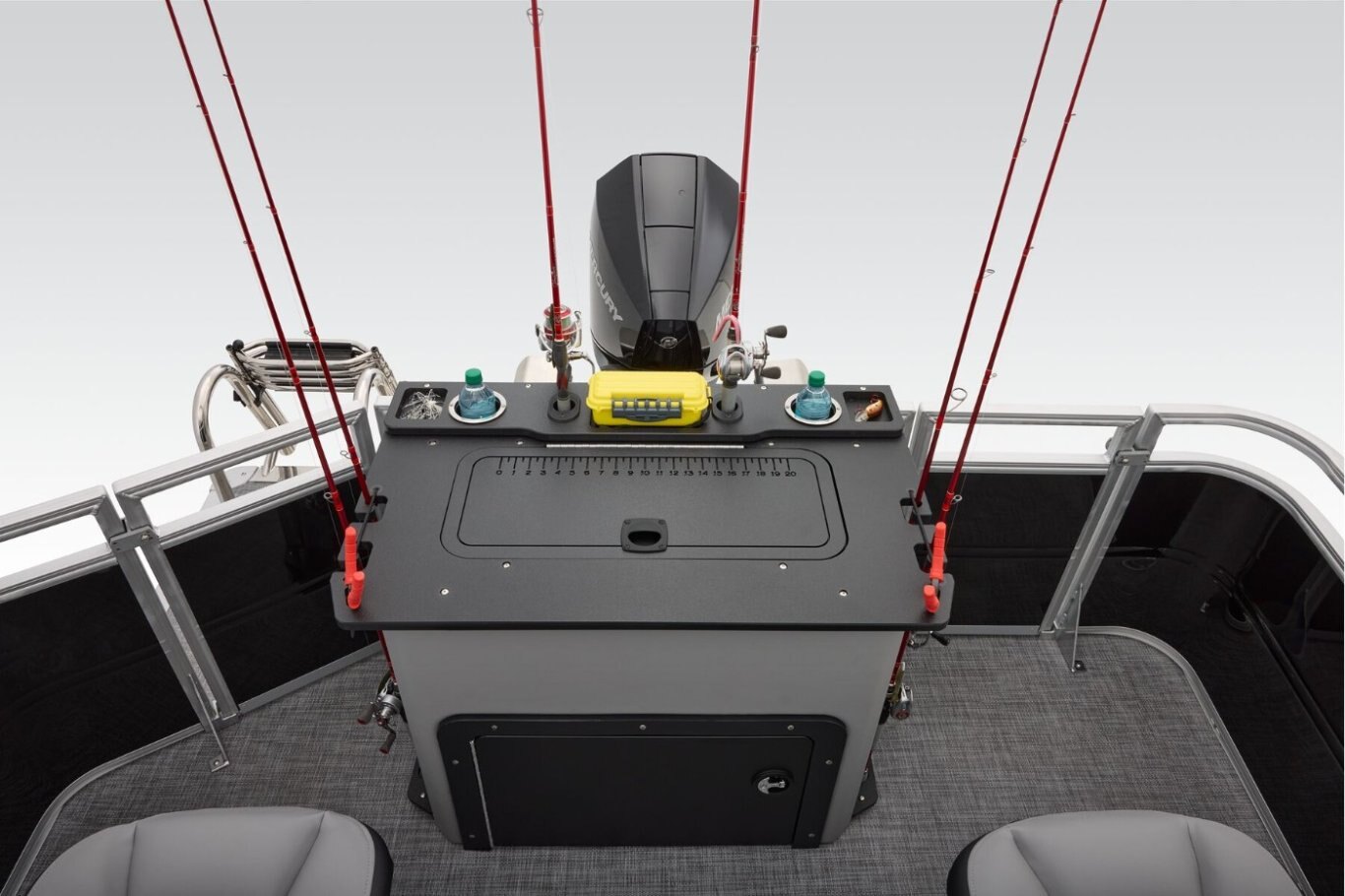 Fishing StationNEW aft fishing station with dual gates & aft platform; 2 pedestal seat base locations; & incorporated rod & tool holder. |