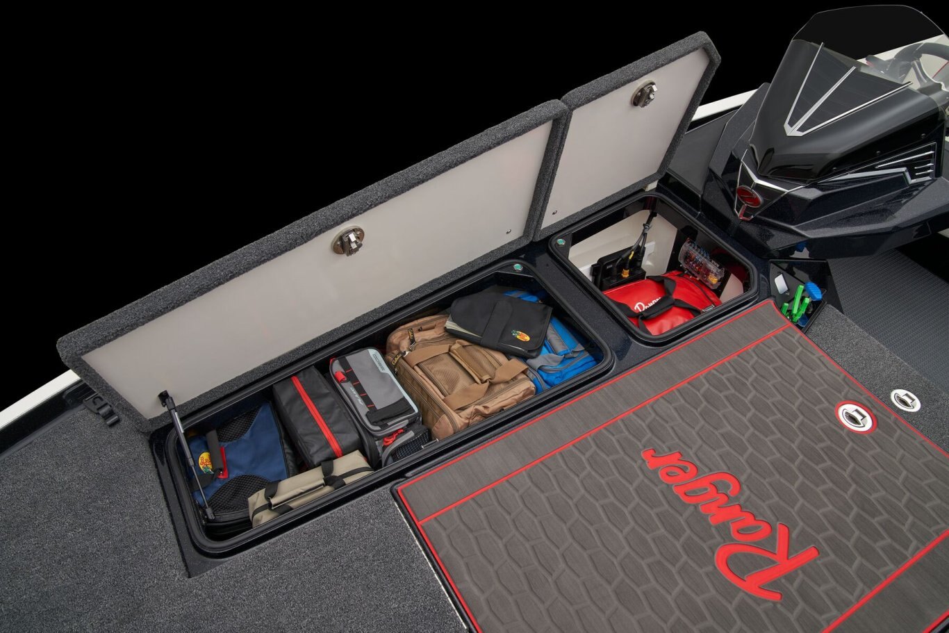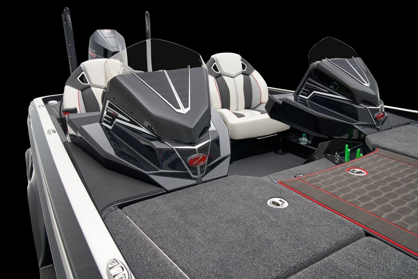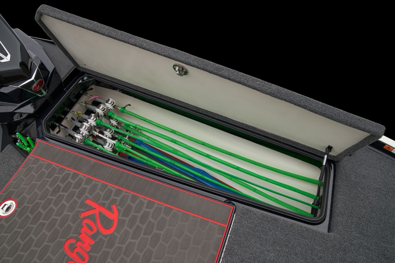THE PINNACLE OF PERFECTIONThe Ranger Cup Equipped package adds pro-selected options that let you hit the most daunting tournament trails with even more competitive advantage. Standard with factory-installed 12" graphs from Lowrance® or GARMIN®, the latest in forward-facing sonar technology, and a host of our most popular equipment from the Z521R options list, the Z521R Cup Equipped package packs-on incredible value to the most hardcore tournament-ready machine on the water. For 2025 we’ve upped the ante even more by adding a host of top-tier touches to set apart this premium rig even more. New heated Cloud 9™ air ride SRS driver seating carries you in comfort, while a new non-skid traction pad graces the front deck for stylish functionality. Protecting your investment is a newly redesigned boat cover for even greater fit and security. Fishability gets an upgrade with a Minn Kota® Quest 115-pound thrust trolling motor and an optional dual BBT electronics mount keeps your graphs secure and easy to read in all conditions. Finally, a color-matched cockpit floor, push-to close latches, and compartment liner mats complement the peerless style of the Z521R Ranger Cup Equipped. From bow to stern, hull to top cap, the Z521R has been tweaked, massaged, enhanced, and perfected across every inch with a passion for perfection. No element of the boat’s design, performance, quality, safety, or fishability was untouched as we crafted this next-generation legend. The culmination of this work has yielded an all-new boat with revamped and elevated all-around performance that melds with aggressive modern styling that sets this rig apart as the apex of bass boats. Real-world improvements include a perfected hull that delivers rapid lift onto plane and a stronger top end. We’ve also elevated the technology that comes standard on the Z521R. The Ranger R.I.D.E. system lets you monitor and control every critical function while a key fob permits quicker start up and enhanced security when you’re not nearby. The Z521R also features an industry-first push-to-start system that gets you to the next spot fast. Deep within the Z521R is a reimagined core and stringer system that not only bolsters our One-Piece Feel Interloc™ construction but permits larger storage boxes for even more space. The rod boxes feature an all-new Echelon tiered shelf system for unmatched customization, flexibility, and capacity and the ability to hole sticks up to 9’. Every box features an automatic light sensor that cuts on LEDs when a lid is lifted. A larger day box and massive 40qt. cooler feature the same construction as today’s premium coolers for all-day-long ice. The Z521R carries more advancements in performance, technology, fishability, and style that not only set it apart from the crowd, but leads it. |