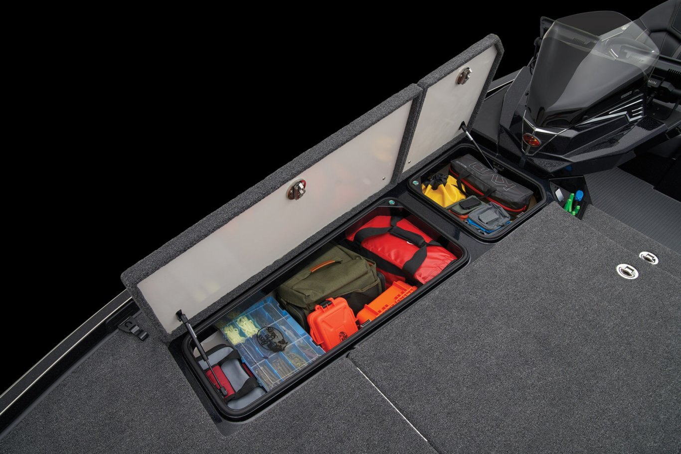 • Integrated center-storage rod & tackle management system