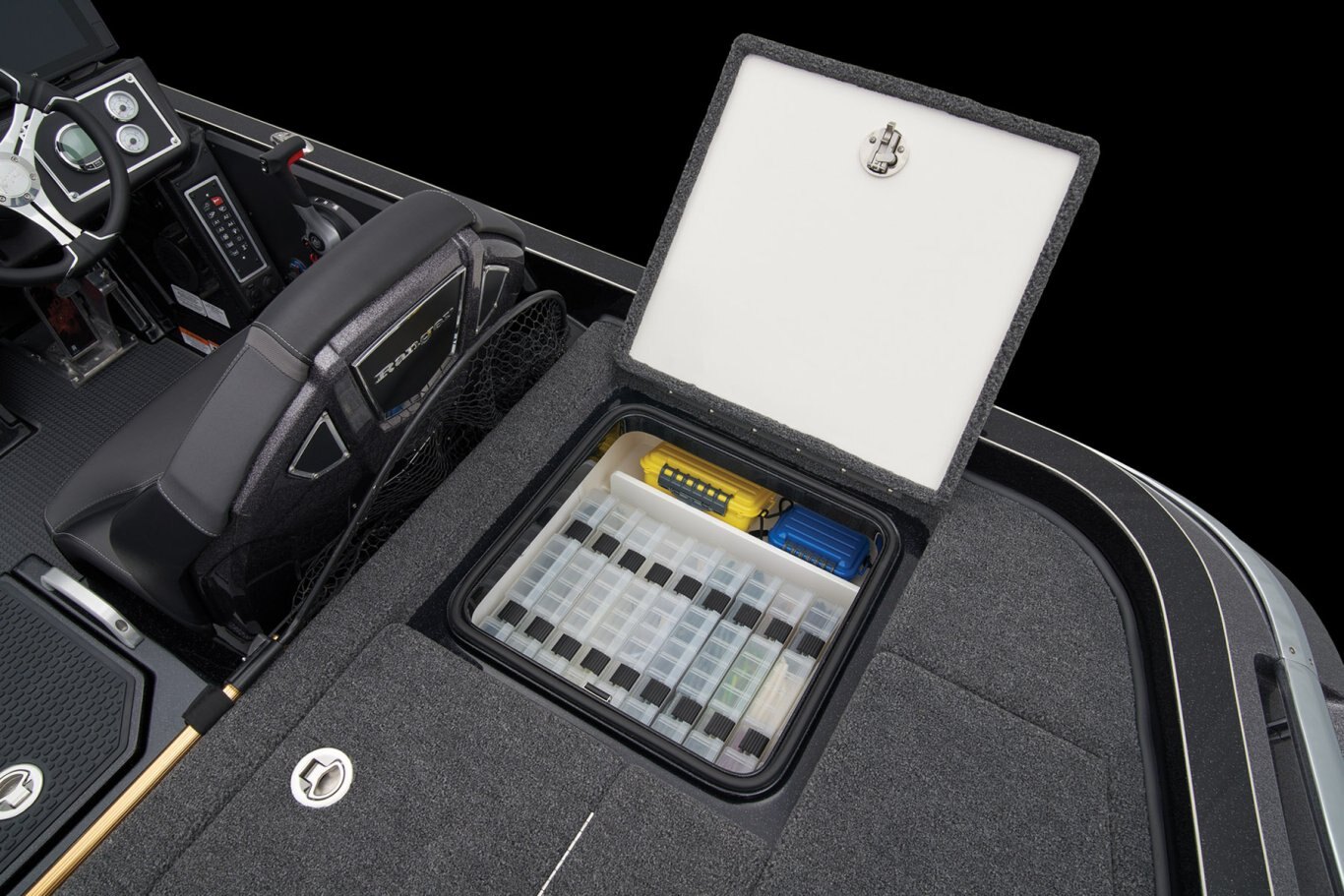 • Ranger Echelon™ Rod Storage System - 3-tiered port & 2-tiered starboard rod lockers
