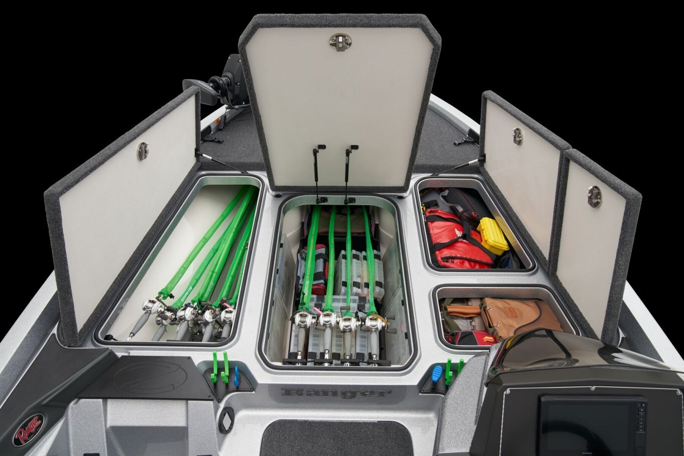 DERBY-READY DYNAMOThe Ranger Z518 is a fierce competitor on every stage, and when you add the benefits of the Ranger Cup Equipped package, this rig’s advantages get even stronger—and represent a greater value. Everything about the boat is professional grade from its top-tier materials, searing all-around performance, and legendary fit and finish. At 18’ 10”, the Z518 Ranger Cup Equipped boasts a 200-horsepower rating for punishing wide-open performance that melds perfectly with a wide, stable beam to deliver rock-solid stability on the trolling motor and on pad. New for 2025 are standard push-to-close latches that eliminate the tripping hazard presented by twist-to-close latches. The console carries a full complement of precision gauges, the electronics of your choice up to 12” and stylish matte black accents. Integrated LED navigation lights, a recessed trolling motor pedal and SRS Soft-Ride™ seating round out this angler-centric rig that far outperforms its price tag. From daylight to dusk, the Ranger Z518 delivers features and value like none other. |