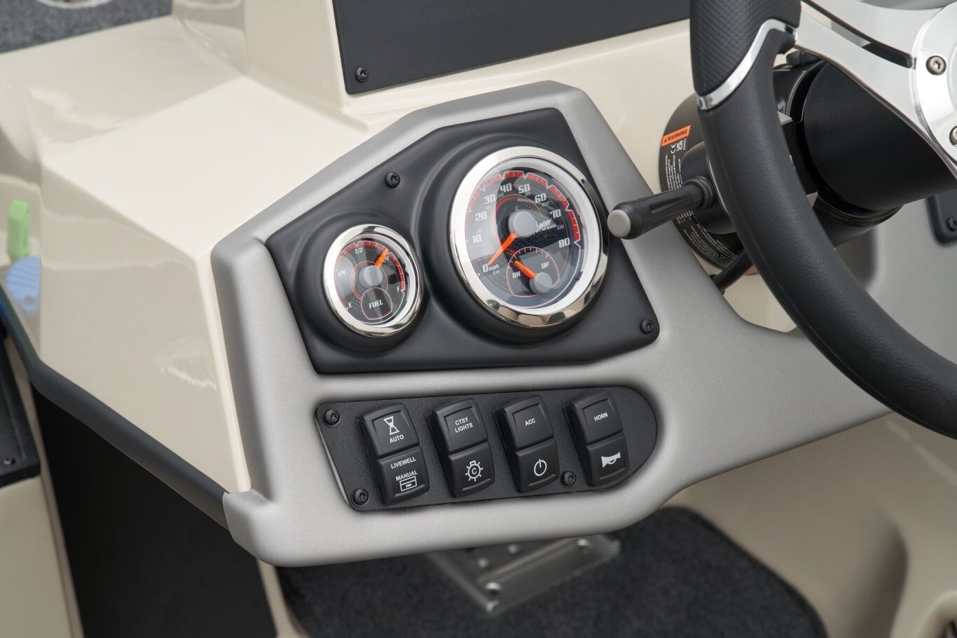 • Multi-function custom gauge package: speedometer, tachometer, fuel, trim, water pressure, temp & volt