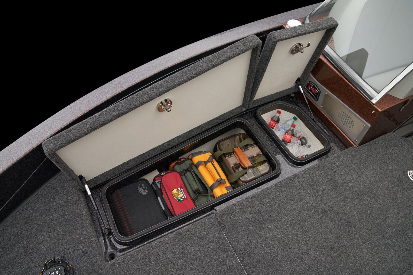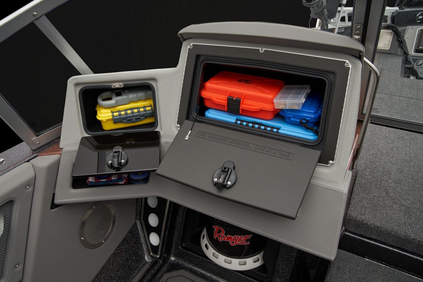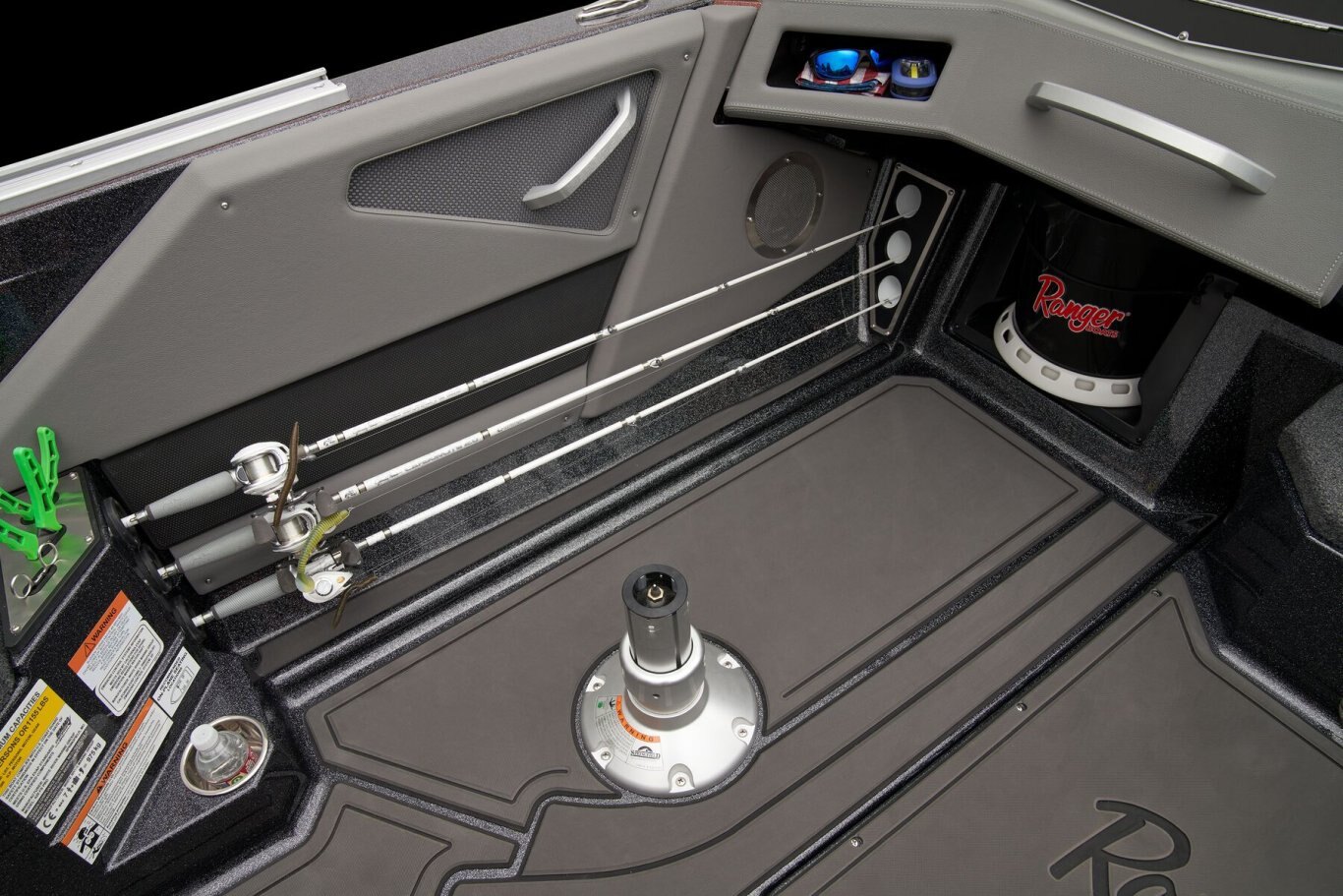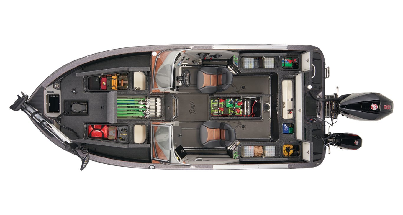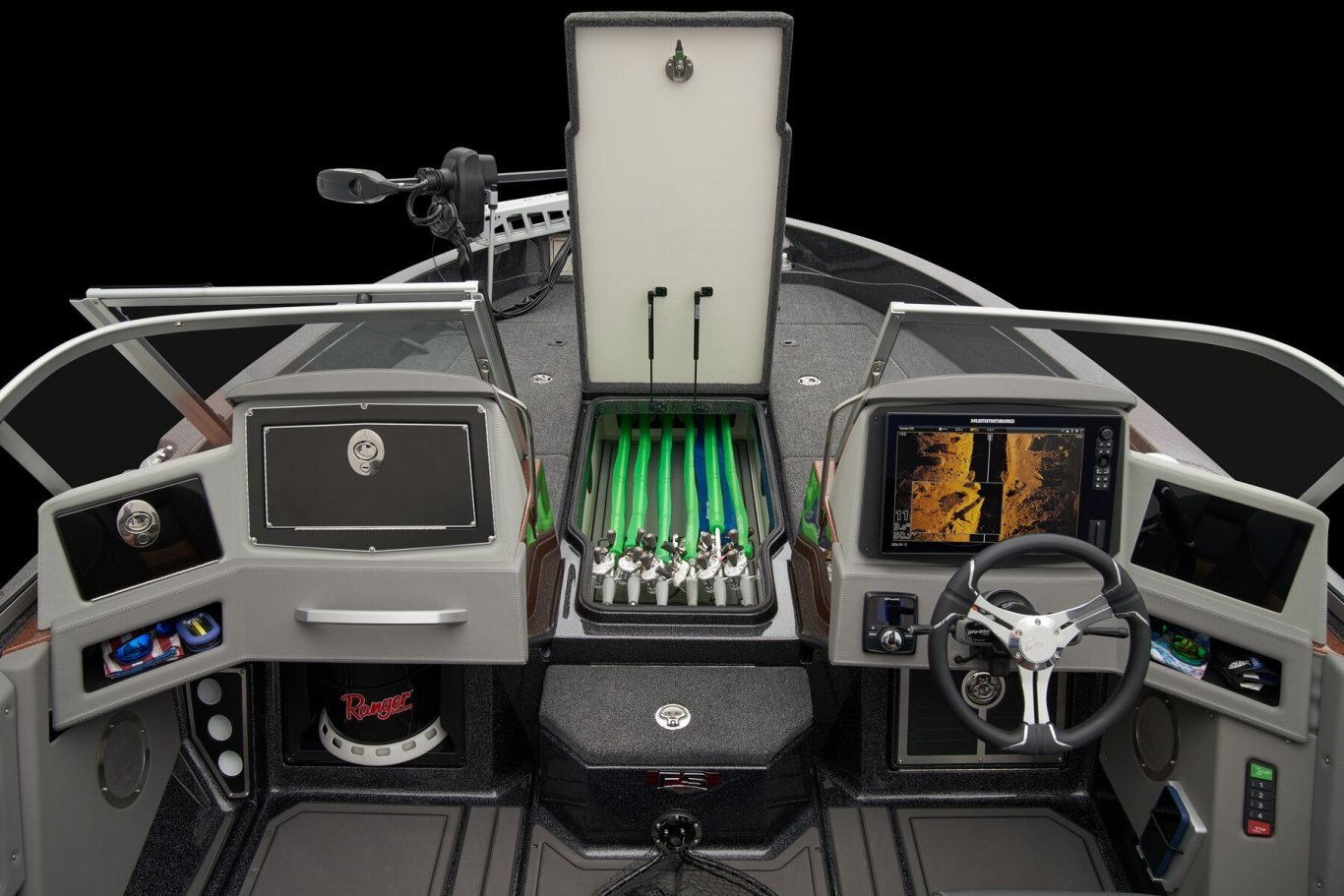 PROVEN TO PERFORM, DRIVEN TO DOMINATEHandcrafted to offer more fishability and performance in a 20-foot Deep V, the Ranger® 620FS PRO carries brute strength with refined comfort and a brilliant layout that is the perfect platform for casting or trolling. At the helm resides the Ranger RIDE system, and from this 9” touchscreen you can control every critical aspect of your boat from livewells, stereo, lighting, Zipwake™ trim tabs, security and more as well as monitor your outboard in real-time. Consoles provide more storage and convenience with dual glove boxes on the passenger side, while the driver’s can flush-mount a screen up to 16” right where you want it—front and center. The phone management stations provide wireless mobile charging capability as well as USB and 12V outlets. Complementing the wealth of features are time-honored and perfected Ranger build protocols and quality, from our upright and level flotation, pultruded transom, and world of foam flotation. Plus, enlarged cockpit storage boxes holds scores of vertically oriented tackle boxes for more space than ever. |