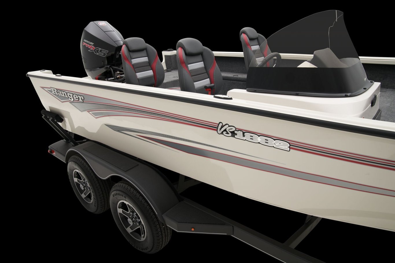 Crushes waves and lesser rigsA perfectly designed V hull with a big beam and a big outboard get you to the fish faster, drier, and with more storage and stability. As the flagship of the VS line, the 1882SC features maximized cockpit and deck space for trolling, casting, setting spreads, and fighting fish. The all-welded, wood-free hull borrows the foam-filled technology from Ranger® fiberglass boats for an unmatched One-Piece-Feel and additional pultruded fiberglass material adds even more strength without the bulk. Custom-tailored upholstery, marine-grade vinyl cockpit flooring and carpet shrug off slime and grime. Regardless of how you outfit this Ranger®, lesser aluminums will be left in your wake. |
