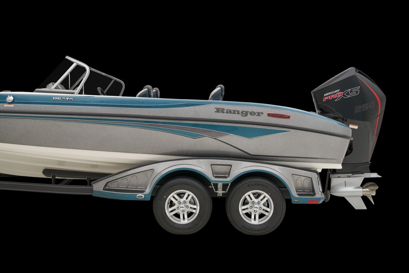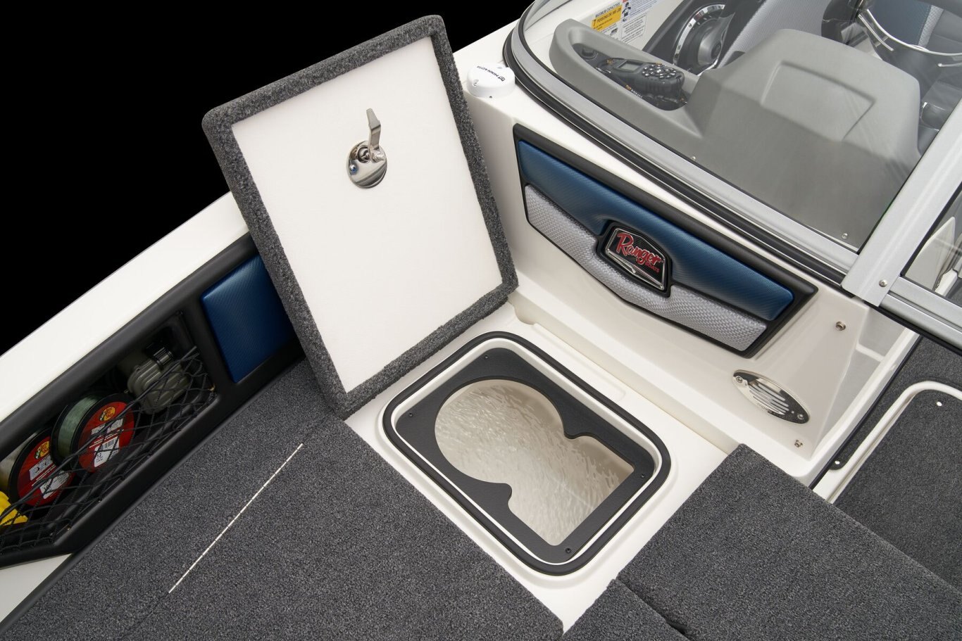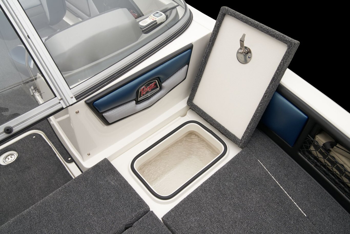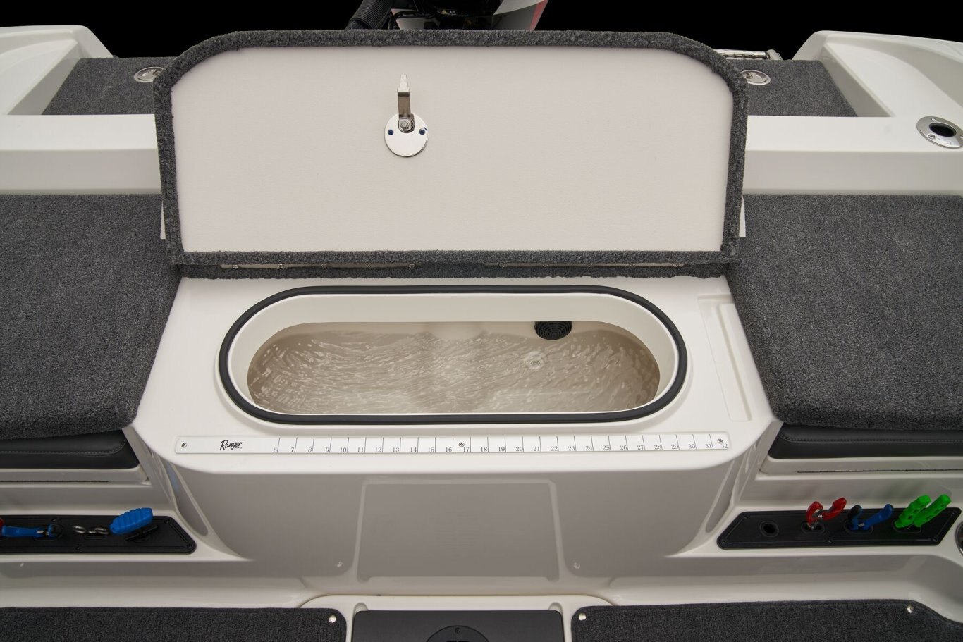 Ranger quality abounds from the foam-filled hull and upright, level flotation to the broad, stable beam that delivers peace of mind and unmatched safety. The wide-open cockpit features six custom-stitched seats, ski storage, a Bluetooth® stereo, USB charging ports, removable carpet, and an insulated cooler.